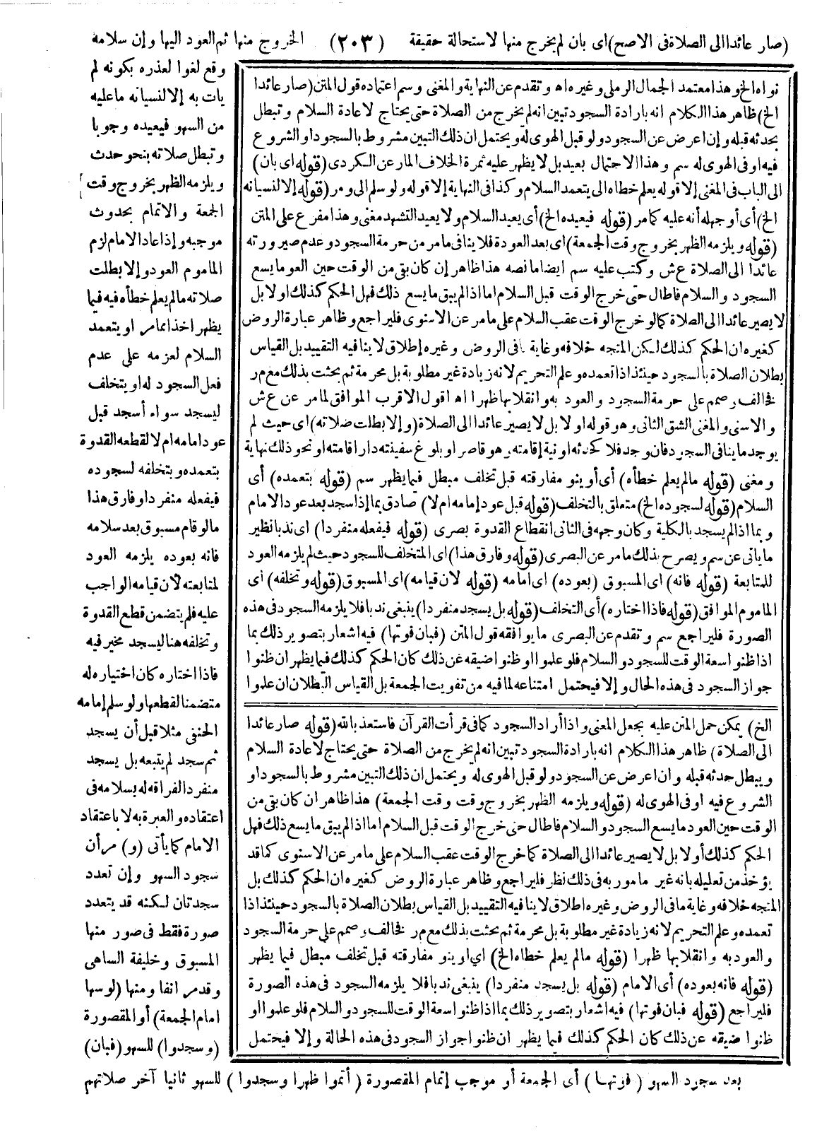 (صَارَ عَائِدًا إلَى الصَّلَاةِ فِي الْأَصَحِّ) أَيْ بَانَ أَنَّهُ لَمْ يَخْرُجْ مِنْهَا لِاسْتِحَالَةِ حَقِيقَةِ الْخُرُوجِ مِنْهَا ثُمَّ الْعَوْدِ إلَيْهَا وَأَنَّ سَلَامَهُ وَقَعَ لَغْوًا لِعُذْرِهِ بِكَوْنِهِ لَمْ يَأْتِ بِهِ إلَّا لِنِسْيَانِهِ مَا عَلَيْهِ مِنْ السَّهْوِ فَيُعِيدُهُ وُجُوبًا وَتَبْطُلُ صَلَاتُهُ بِنَحْوِ حَدَثٍ وَيَلْزَمُهُ الظُّهْرُ بِخُرُوجِ وَقْتِ الْجُمُعَةِ وَالْإِتْمَامُ بِحُدُوثِ مُوجِبِهِ، وَإِذَا عَادَ الْإِمَامُ لَزِمَ الْمَأْمُومَ الْعَوْدُ وَإِلَّا بَطَلَتْ صَلَاتُهُ مَا لَمْ يَعْلَمْ خَطَأَهُ فِيهِ فِيمَا يَظْهَرُ أَخْذًا مِمَّا مَرَّ، أَوْ يَتَعَمَّدُ السَّلَامَ لِعَزْمِهِ عَلَى عَدَمِ فِعْلِ السُّجُودِ لَهُ أَوْ يَتَخَلَّفُ لِيَسْجُدَ سَوَاءٌ أَسَجَدَ قَبْلَ عَوْدِ إمَامِهِ أَمْ لَا لِقَطْعِهِ الْقُدْوَةَ بِتَعَمُّدِهِ وَبِتَخَلُّفِهِ لِسُجُودِهِ فَيَفْعَلُهُ مُنْفَرِدًا وَفَارَقَ هَذَا مَا لَوْ قَامَ مَسْبُوقٌ بَعْدَ سَلَامِهِ فَإِنَّهُ بِعَوْدِهِ يَلْزَمُهُ الْعَوْدُ لِمُتَابَعَتِهِ؛ لِأَنَّ قِيَامَهُ الْوَاجِبُ عَلَيْهِ فَلَمْ يَتَضَمَّنْ قَطْعَ الْقُدْوَةِ وَتَخَلُّفُهُ هُنَا لِيَسْجُدَ مُخَيَّرٌ فِيهِ.