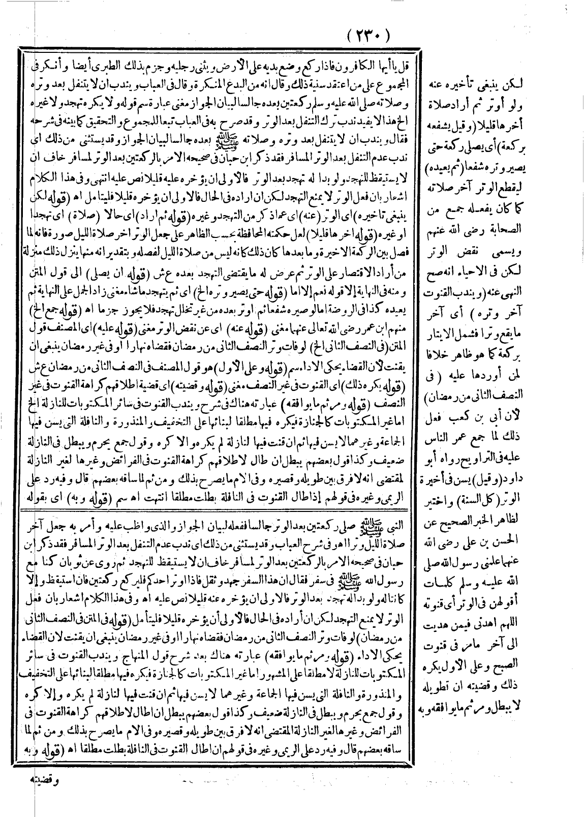 ـــــــــــــــــــــــــــــSالنَّبِيَّ - صَلَّى اللَّهُ عَلَيْهِ وَسَلَّمَ - صَلَّى رَكْعَتَيْنِ بَعْدَ الْوِتْرِ جَالِسًا» فَفَعَلَهُ لِبَيَانِ الْجَوَازِ وَاَلَّذِي وَاظَبَ عَلَيْهِ وَأَمَرَ بِهِ جَعْلُ آخِرِ صَلَاةِ اللَّيْلِ وِتْرًا اهـ.