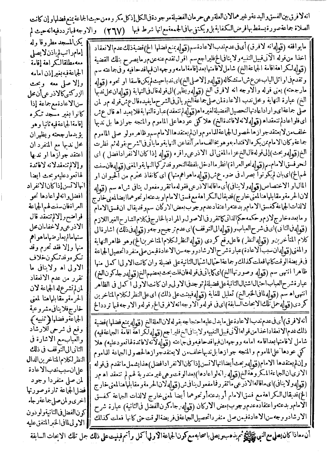 فَإِنْ سُنَّتْ لَهُمْ الْجَمَاعَةُ فَوَاضِحٌ وَإِلَّا لَمْ تَنْعَقِدْ قَالَ الْأَذْرَعِيُّ وَلَا خَفَاءَ أَنَّ مَحَلَّ سَنِّهَا مَا لَمْ يُعَارِضْهَا مَا هُوَ أَهَمُّ مِنْهَا وَإِلَّا فَقَدْ تَحْرُمُ وَقَدْ تُكْرَهُ وَقَدْ تَكُونُ خِلَافَ الْأَوْلَى. اهـ. وَلَا يُنَافِي مَا تَقَرَّرَ مِنْ عَدَمِ الِانْعِقَادِ لِمَنْ لَمْ تُشْرَعْ لَهُ الْجَمَاعَةُ؛ لِأَنَّ الْحُرْمَةَ وَمُقَابِلَهَا هُنَا لِمَعْنًى خَارِجٍ فَلَا يُنَافِي مَشْرُوعِيَّةَ الْجَمَاعَةِ وَفَضْلَهَا.
