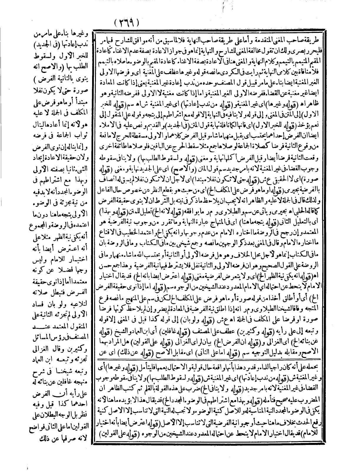 (قَوْلُهُ: وَغَيْرُهَا) أَيْ وَغَيْرُ الْمُغْنِيَةِ ش (قَوْلُهُ مِنْ نَدْبِ إعَادَتِهَا) أَيْ غَيْرِ الْمُغْنِيَةِ ش (قَوْلُهُ: وَلِسُقُوطِ الطَّلَبِ بِهَا) وَلَا يُنَافِي سُقُوطَهُ وُجُوبُ الْقَضَاءِ فِي غَيْرِ الْمُغْنِيَةِ؛ لِأَنَّهُ بِأَمْرٍ جَدِيدٍ (قَوْلُهُ: وَلَا يُنَافِي إلَخْ) ضَرَبَ عَلَى هَذِهِ الْقَوْلَةِ بِالْقَلَمِ ثُمَّ كَتَبَ الظَّاهِرُ أَنَّ الْمَضْرُوبَ عَلَيْهِ صَحِيحٌ فَتَأَمَّلْهُ (قَوْلُهُ وَبِهَذَا مَعَ اشْتِرَاطِهِمْ فِي الْوُضُوءِ الْمُجَدَّدِ إلَخْ) قَدْ يُقَالُ هَذَا لَا يُؤَيِّدُهُ مَا هُنَا؛ لِأَنَّهُ يَكْفِي فِي الْوُضُوءِ الْمُجَدَّدِ النِّيَّةُ الْمُنَاسِبَةِ لَهُ وَلِلْأَصْلِ كَنِيَّةِ الْوُضُوءِ وَلَا تَجِبُ لَهُ النِّيَّةُ الَّتِي لَا تُنَاسِبُ إلَّا الْأَصْلَ كَنِيَّةِ رَفْعِ الْحَدَثِ بِخِلَافِ مَا هُنَا حَيْثُ أَوْجَبُوا نِيَّةَ الْفَرْضِيَّةِ الَّتِي لَا تُنَاسِبُ إلَّا الْأَصْلَ (قَوْلُهُ اُعْتُرِضَ أَيْضًا بِأَنَّهُ اخْتِيَارٌ لِلْإِمَامِ إلَخْ) قَدْ يُقَالُ اخْتِيَارُ الْإِمَامِ لَا يَنْحَطُّ عَنْ احْتِمَالِهِ الْمَعْدُودِ عِنْدَ الشَّيْخَيْنِ مِنْ الْوُجُوهِ (قَوْلُهُ عَلَى الْقَوْلَيْنِ)
