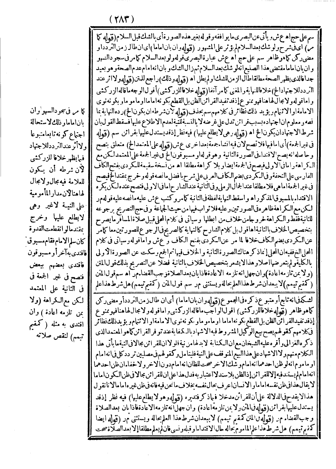 ـــــــــــــــــــــــــــــQسم عَلَى حَجّ. اهـ. ع ش وَيَأْتِي عَنْ الْبَصْرِيِّ مَا يُوَافِقُهُ وَقَوْلُهُ بِغَيْرِ هَذِهِ الصُّورَةِ أَيْ بِالشَّكِّ قَبْلَ السَّلَامِ (قَوْلُهُ: كَمَا مَرَّ) أَيْ فِي شَرْحٍ وَلَوْ شَكَّ بَعْدَ السَّلَامِ لَمْ يُؤَثِّرْ عَلَى الْمَشْهُورِ (قَوْلُهُ: وَإِنْ بَانَ إمَامًا) أَيْ إنْ طَالَ زَمَنُ التَّرَدُّدِ أَوْ مَضَى رُكْنٌ كَمَا هُوَ ظَاهِرُ سم عَلَى حَجّ. اهـ. ع ش عِبَارَةُ الْبَصْرِيِّ قَوْلُهُ وَلَوْ بَعْدَ السَّلَامِ كَمَا مَرَّ فِي سُجُودِ السَّهْوِ، وَإِنْ بَانَ إمَامًا مُقْتَضَى هَذَا الصَّنِيعِ أَنَّهُ لَوْ شَكَّ بَعْدَ السَّلَامِ ثُمَّ زَالَ الشَّكُّ وَبَانَ أَنَّهُ إمَامٌ عَدَمُ الصِّحَّةِ وَهُوَ بَعِيدٌ جِدًّا، فَاَلَّذِي يَظْهَرُ الصِّحَّةُ مُطْلَقًا طَالَ الزَّمَنُ لِلشَّكِّ أَوْ لَمْ يَطُلْ. اهـ.