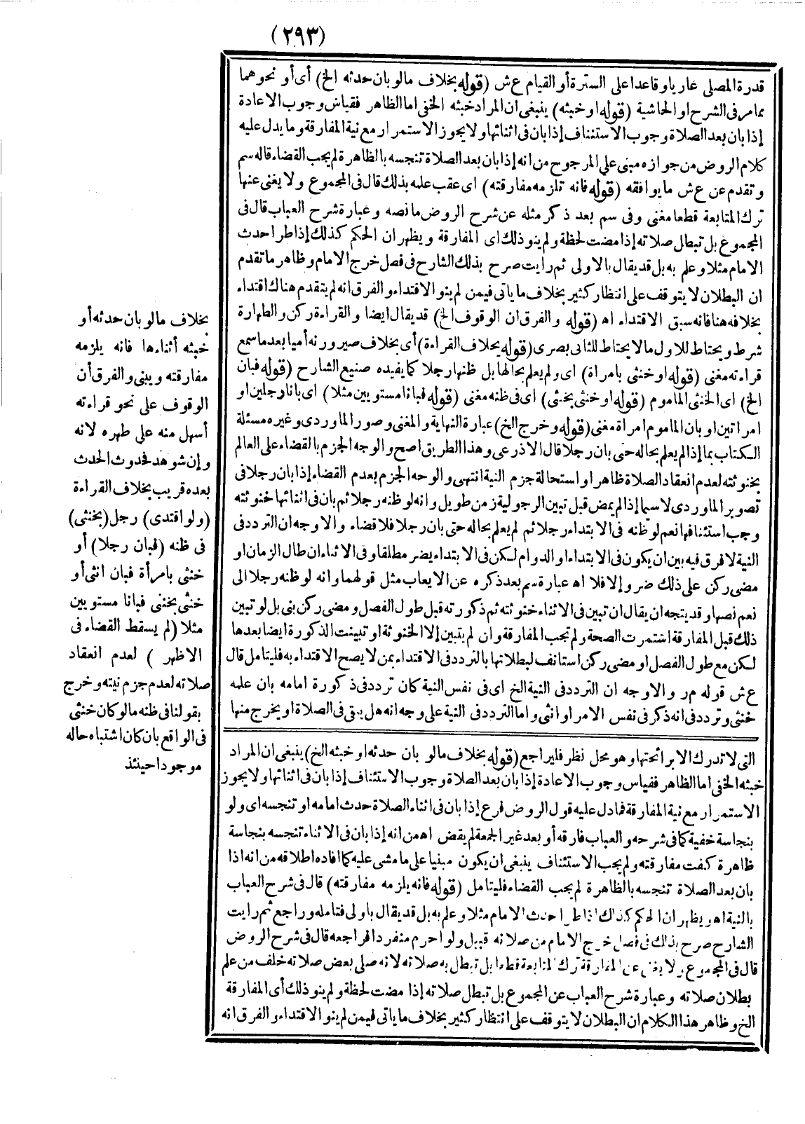 ـــــــــــــــــــــــــــــQقُدْوَةُ الْمُصَلِّي عَارِيًّا أَوْ قَاعِدًا عَلَى السُّتْرَةِ أَوْ الْقِيَامِ ع ش (قَوْلُهُ: بِخِلَافِ مَا لَوْ بَانَ حَدَثُهُ إلَخْ) أَيْ أَوْ نَحْوِهِمَا مِمَّا مَرَّ فِي الشَّرْحِ أَوْ الْحَاشِيَةِ (قَوْلُهُ: أَوْ خَبَثُهُ) يَنْبَغِي أَنَّ الْمُرَادَ خَبَثُهُ الْخَفِيُّ أَمَّا الظَّاهِرُ فَقِيَاسُ وُجُوبِ الْإِعَادَةِ إذَا بَانَ بَعْدَ الصَّلَاةِ وُجُوبُ الِاسْتِئْنَافِ إذَا بَانَ فِي أَثْنَائِهَا وَلَا يَجُوزُ الِاسْتِمْرَارُ مَعَ نِيَّةِ الْمُفَارَقَةِ وَمَا يَدُلُّ عَلَيْهِ كَلَامُ الرَّوْضِ مِنْ جَوَازِهِ مَبْنِيٌّ عَلَى الْمَرْجُوحِ مِنْ أَنَّهُ إذَا بَانَ بَعْدَ الصَّلَاةِ تَنَجُّسُهُ بِالظَّاهِرَةِ لَمْ يَجِبْ الْقَضَاءُ قَالَهُ سم وَتَقَدَّمَ عَنْ ع ش مَا يُوَافِقُهُ (قَوْلُهُ: فَإِنَّهُ تَلْزَمُهُ مُفَارَقَتُهُ) أَيْ عَقِبَ عِلْمِهِ بِذَلِكَ قَالَ فِي الْمَجْمُوعِ وَلَا يُغْنِي عَنْهَا تَرْكُ الْمُتَابَعَةِ قَطْعًا مُغْنِي وَفِي سم بَعْدَ ذِكْرِ مِثْلِهِ عَنْ شَرْحِ الرَّوْضِ مَا نَصُّهُ وَعِبَارَةُ شَرْحِ الْعُبَابِ قَالَ فِي الْمَجْمُوعِ بَلْ تَبْطُلُ صَلَاتُهُ إذَا مَضَتْ لَحْظَةٌ وَلَمْ يَنْوِ ذَلِكَ أَيْ الْمُفَارَقَةَ. اهـ. وَيَظْهَرُ أَنَّ الْحُكْمَ كَذَلِكَ إذَا طَرَأَ حَدَثُ الْإِمَامِ مَثَلًا وَعَلِمَ بِهِ بَلْ قَدْ يُقَالُ بِالْأَوْلَى ثُمَّ رَأَيْت صَرَّحَ بِذَلِكَ الشَّارِحِ فِي فَصْلِ خَرَجَ الْإِمَامُ وَظَاهِرُ مَا تَقَدَّمَ أَنَّ الْبُطْلَانَ لَا يَتَوَقَّفُ عَلَى انْتِظَارِ كَثِيرٍ بِخِلَافِ مَا يَأْتِي فِيمَنْ لَمْ يَنْوِ الِاقْتِدَاءَ، وَالْفَرْقُ أَنَّهُ لَمْ يَتَقَدَّمْ هُنَاكَ اقْتِدَاءٌ بِخِلَافِهِ هُنَا، فَإِنَّهُ سَبَقَ الِاقْتِدَاءَ. اهـ. (قَوْلُهُ: وَالْفَرْقُ أَنَّ الْوُقُوفَ إلَخْ) قَدْ يُقَالُ أَيْضًا، وَالْقِرَاءَةَ رُكْنٌ، وَالطَّهَارَةَ شَرْطٌ وَيُحْتَاطُ لِلْأَوَّلِ مَا لَا يُحْتَاطُ لِلثَّانِي بَصْرِيٌّ (قَوْلُهُ: بِخِلَافِ الْقِرَاءَةِ) أَيْ بِخِلَافِ صَيْرُورَتِهِ أُمِّيًّا بَعْدَ مَا سَمِعَ قِرَاءَتَهُ مُغْنِي.