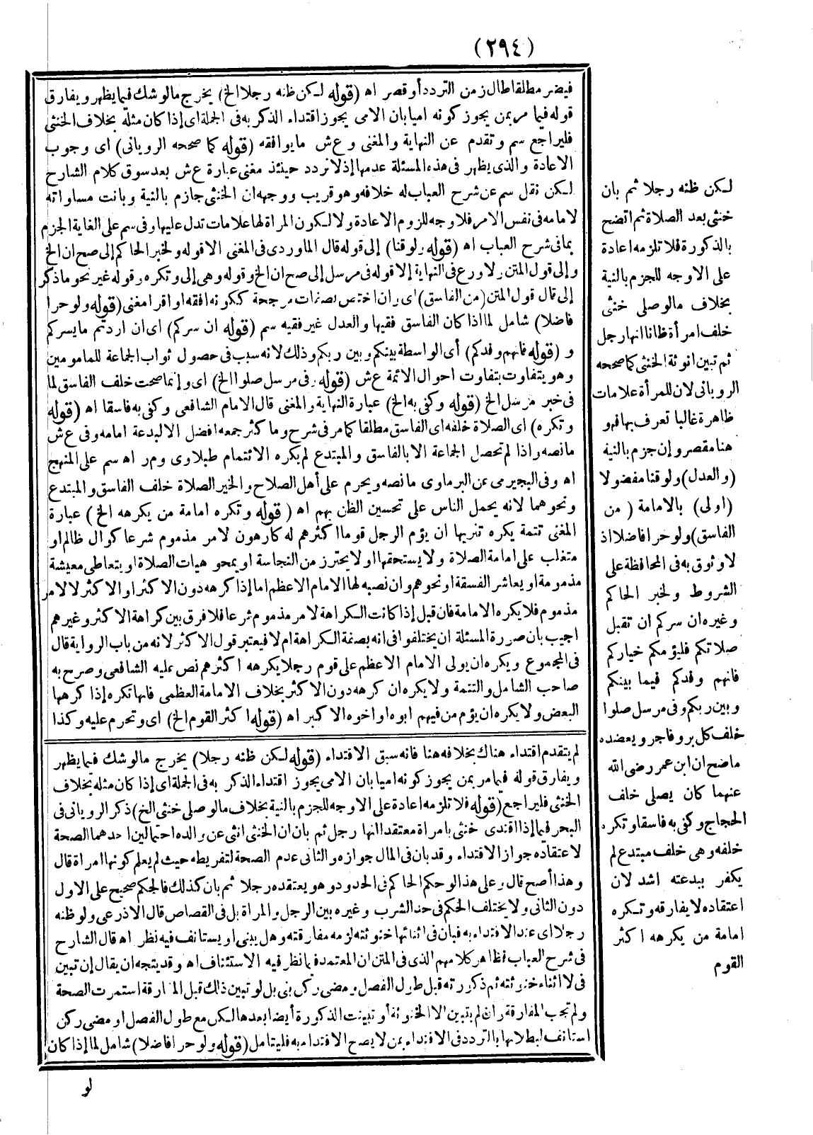 ـــــــــــــــــــــــــــــQفَيَضُرُّ مُطْلَقًا طَالَ زَمَنُ التَّرَدُّدِ أَوْ قَصُرَ. اهـ. (قَوْلُهُ: لَكِنْ ظَنَّهُ رَجُلًا إلَخْ) يَخْرُجُ مَا لَوْ شَكَّ فِيمَا يَظْهَرُ وَيُفَارِقُ قَوْلَهُ فِيمَا مَرَّ بِمَنْ يَجُوزُ كَوْنُهُ أُمِّيًّا بِأَنَّ الْأُمِّيَّ يَجُوزُ اقْتِدَاءُ الذَّكَرِ بِهِ فِي الْجُمْلَةِ أَيْ إذَا كَانَ مِثْلَهُ بِخِلَافِ الْخُنْثَى فَلْيُرَاجَعْ سم وَتَقَدَّمَ عَنْ النِّهَايَةِ وَالْمُغْنِي وَعِ ش مَا يُوَافِقُهُ (قَوْلُهُ: كَمَا صَحَّحَهُ الرُّويَانِيُّ) أَيْ وُجُوبَ الْإِعَادَةِ وَاَلَّذِي يَظْهَرُ فِي هَذِهِ الْمَسْأَلَةِ عَدَمُهَا إذْ لَا تَرَدُّدَ حِينَئِذٍ مُغْنِي عِبَارَةُ ع ش بَعْدَ سَوْقِ كَلَامِ الشَّارِحِ لَكِنْ نَقَلَ سم عَنْ شَرْحِ الْعُبَابِ لَهُ خِلَافَهُ وَهُوَ قَرِيبٌ، وَوَجْهُهُ أَنَّ الْخُنْثَى جَازِمٌ بِالنِّيَّةِ وَبَانَتْ مُسَاوَاتُهُ لِإِمَامِهِ فِي نَفْسِ الْأَمْرِ فَلَا وَجْهَ لِلُزُومِ الْإِعَادَةِ وَلَا لِكَوْنِ الْمَرْأَةِ لَهَا عَلَامَاتٌ تَدُلُّ عَلَيْهَا وَفِي سم عَلَى الْغَايَةِ الْجَزْمُ بِمَا فِي شَرْحِ الْعُبَابِ. اهـ. .