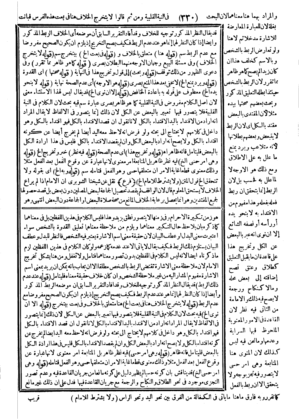 ـــــــــــــــــــــــــــــQقَدْ يُقَالُ النَّظَرُ الْمَذْكُورُ تَوْجِيهٌ لِلْخِلَافِ وَقَدْ أَفَادَ التَّقْرِيرُ السَّابِقُ أَنَّ مَوْضِعَهُ أَيْ الْخِلَافِ الرَّبْطُ الْمَذْكُورُ وَأَيْضًا إذَا كَانَ النَّظَرُ لَهُمَا إنَّمَا هُوَ عِنْدَ عَدَمِ الرَّبْطِ فَكَيْفَ يَصِحُّ التَّخْرِيجُ إذْ يَلْزَمُ أَنْ يَكُونَ الصَّحِيحُ مَفْرُوضًا مَعَ عَدَمِ الرَّبْطِ سم (قَوْلُهُ: هُنَا) مُتَعَلِّقٌ بِالْخِلَافِ وَ (قَوْلُهُ: فِي بِعْت إلَخْ) بِيَتَخَرَّجُ سم (قَوْلُهُ: لَا يَتَخَرَّجُ الْخِلَافُ إلَخْ) وَفِي مَسْأَلَةِ الْبَيْعِ وَجْهَانِ الْأَوْجَهُ مِنْهُمَا الْبُطْلَانُ بَصْرِيٌّ (قَوْلُهُ: كَمَا هُوَ ظَاهِرٌ مِمَّا تَقَرَّرَ) وَفِي دَعْوَى الظُّهُورِ مِنْ ذَلِكَ تَوَقُّفٌ (قَوْلُهُ: وَبَحَثَ) إلَى قَوْلِهِ وَتَخْرِيجُ هَذَا فِي النِّهَايَةِ (قَوْلُهُ: صِحَّتَهَا) أَيْ الْقُدْوَةِ (قَوْلُهُ: وَيُرَدُّ بِمَنْعِ إلَخْ) لَا يَخْفَى بُعْدُ هَذَا الْمَنْعِ بَصْرِيٌّ (قَوْلُهُ: هُوَ الْأَوْجَهُ) أَيْ عَدَمُ الصِّحَّةِ نِهَايَةٌ (قَوْلُهُ: لَا بِنَحْوِ يَدِهِ إلَخْ) مَعْطُوفٌ عَلَى قَوْلِهِ بِهِ بِإِعَادَةِ الْخَافِضِ