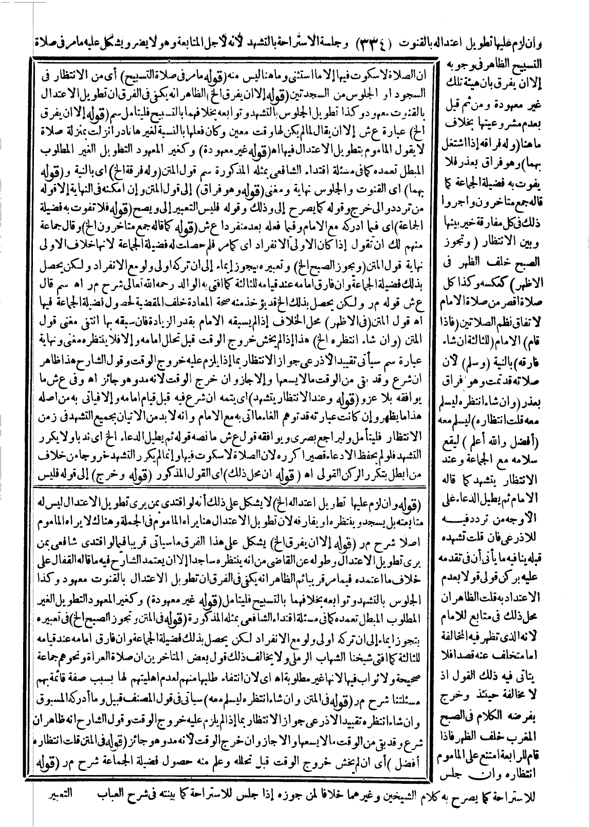 فَإِنْ قُلْت تَشَهُّدُهُ قَبْلَهُ يُنَافِيه مَا يَأْتِي أَنَّ فِي تَقَدُّمِهِ عَلَيْهِ بِرُكْنٍ قَوْلِيٍّ قَوْلًا بِعَدَمِ الِاعْتِدَادِ بِهِ قُلْت الظَّاهِرُ أَنَّ مَحَلَّ ذَلِكَ فِي مُتَابِعٍ لِلْإِمَامِ؛ لِأَنَّهُ الَّذِي تَظْهَرُ فِيهِ الْمُخَالَفَةُ أَمَّا مُتَخَلِّفٌ عَنْهُ قَصْدًا فَلَا يَتَأَتَّى فِيهِ ذَلِكَ الْقَوْلُ إذْ لَا مُخَالَفَةَ حِينَئِذٍ وَخَرَجَ بِفَرْضِهِ الْكَلَامُ فِي الصُّبْحِ وَالْمَغْرِبِ خَلْفَ الظُّهْرِ، فَإِذَا قَامَ لِلرَّابِعَةِ امْتَنَعَ عَلَى الْمَأْمُومِ انْتِظَارُهُ، وَإِنْ جَلَسَ لِلِاسْتِرَاحَةِ كَمَا يُصَرِّحُ بِهِ كَلَامُ الشَّيْخَيْنِ وَغَيْرِهِمَا خِلَافًا لِمَنْ جَوَّزَهُ إذَا جَلَسَ لِلِاسْتِرَاحَةِ كَمَا بَيَّنْته فِي شَرْحِ الْعُبَابِ