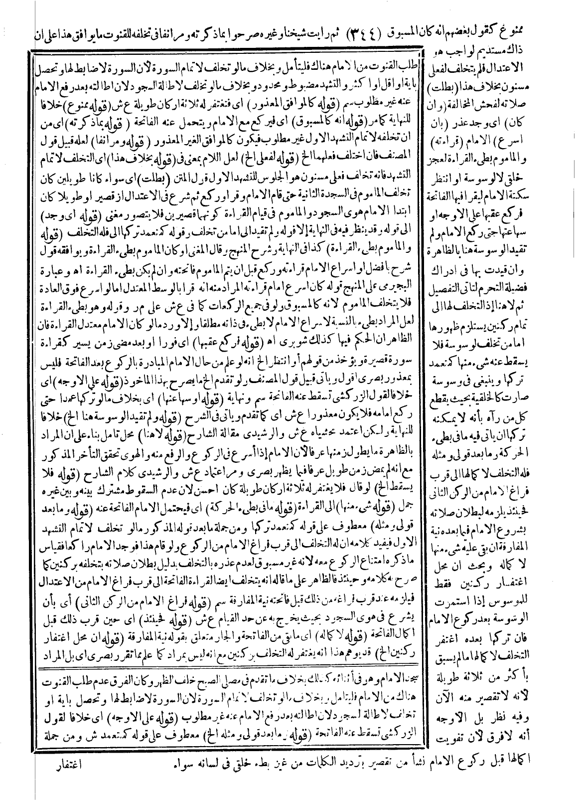 ـــــــــــــــــــــــــــــQطَلَبِ الْقُنُوتِ مِنْ الْإِمَامِ هُنَاكَ فَلْيُتَأَمَّلْ وَبِخِلَافِ مَا لَوْ تَخَلَّفَ لِإِتْمَامِ السُّورَةِ لِأَنَّ السُّورَةَ لَا ضَابِطَ لَهَا وَتَحْصُلُ بِآيَةٍ أَوْ أَقَلَّ أَوْ أَكْثَرَ، وَالتَّشَهُّدُ مَضْبُوطٌ وَمَحْدُودٌ وَبِخِلَافِ مَا لَوْ تَخَلَّفَ لِإِطَالَةِ السُّجُودِ لِأَنَّ إطَالَتَهُ بَعْدَ رَفْعِ الْإِمَامِ عَنْهُ غَيْرُ مَطْلُوبٍ سم (قَوْلُهُ: كَالْمُوَافِقِ الْمَعْذُورِ) أَيْ فَتُغْتَفَرُ لَهُ ثَلَاثَةُ أَرْكَانٍ طَوِيلَةٍ ع ش (قَوْلُهُ: مَمْنُوعٌ) خِلَافًا لِلنِّهَايَةِ كَمَا مَرَّ (قَوْلُهُ إنَّهُ كَالْمَسْبُوقِ) أَيْ فَيَرْكَعُ مَعَ الْإِمَامِ وَيَتَحَمَّلُ عَنْهُ الْفَاتِحَةَ (قَوْلُهُ بِمَا ذَكَرْته) أَيْ مِنْ أَنَّ تَخَلُّفَهُ لِإِتْمَامِ التَّشَهُّدِ الْأَوَّلِ غَيْرُ مَطْلُوبٍ فَيَكُونُ كَالْمُوَافِقِ الْغَيْرِ الْمَعْذُورِ (قَوْلُهُ: وَمَرَّ آنِفًا) لَعَلَّهُ قُبَيْلَ قَوْلِ الْمُصَنِّفِ، فَإِنْ اخْتَلَفَ فِعْلُهُمَا إلَخْ (قَوْلُهُ لِفِعْلِيٍّ إلَخْ) لَعَلَّ اللَّامَ بِمَعْنَى فِي (قَوْلُهُ: بِخِلَافِ هَذَا) أَيْ التَّخَلُّفِ لِإِتْمَامِ التَّشَهُّدِ، فَإِنَّهُ تَخَلُّفٌ لِفِعْلِيٍّ مَسْنُونٍ هُوَ الْجُلُوسُ لِلتَّشَهُّدِ الْأَوَّلِ قَوْلُ الْمَتْنِ (بَطَلَتْ) أَيْ سَوَاءٌ كَانَا طَوِيلَيْنِ كَأَنْ تَخَلَّفَ الْمَأْمُومُ فِي السَّجْدَةِ الثَّانِيَةِ حَتَّى قَامَ الْإِمَامُ وَقَرَأَ وَرَكَعَ ثُمَّ شَرَعَ فِي الِاعْتِدَالِ أَوْ قَصِيرًا وَطَوِيلًا كَأَنْ ابْتَدَأَ الْإِمَامُ هُوِيَّ السُّجُودِ، وَالْمَأْمُومُ فِي قِيَامِ الْقِرَاءَةِ، وَأَمَّا كَوْنُهُمَا قَصِيرَيْنِ فَلَا يُتَصَوَّرُ مُغْنِي (قَوْلُهُ: أَيْ وُجِدَ) إلَى قَوْلِهِ وَقَدْ يُنْظَرُ فِيهِ فِي النِّهَايَةِ إلَّا قَوْلَهُ وَلَمْ تُقَيَّدْ إلَى أَمَّا مَنْ تَخَلَّفَ وَقَوْلُهُ كَمُتَعَمِّدِ تَرْكِهَا إلَى فَلَهُ التَّخَلُّفُ (قَوْلُهُ: وَالْمَأْمُومُ بَطِيءُ الْقِرَاءَةِ) كَذَا فِي النِّهَايَةِ وَشَرْحِ الْمَنْهَجِ وَقَالَ الْمُغْنِي أَوْ كَانَ الْمَأْمُومُ بَطِيءَ الْقِرَاءَةِ وَيُوَافِقُهُ قَوْلُ شَرْحِ بَافَضْلٍ أَوْ أَسْرَعَ الْإِمَامُ قِرَاءَتَهُ وَرَكَعَ قَبْلَ أَنْ يُتِمَّ الْمَأْمُومُ فَاتِحَتَهُ، وَإِنْ لَمْ يَكُنْ بَطِيءَ الْقِرَاءَةِ اهـ وَعِبَارَةُ الْبُجَيْرِمِيِّ عَلَى الْمَنْهَجِ قَوْلُهُ كَأَنْ أَسْرَعَ إمَامٌ قِرَاءَتَهُ الْمُرَادُ مِنْهُ أَنَّهُ قَرَأَ بِالْوَسَطِ الْمُعْتَدِلِ أَمَّا لَوْ أَسْرَعَ فَوْقَ الْعَادَةِ فَلَا يَتَخَلَّفُ الْمَأْمُومُ لِأَنَّهُ كَالْمَسْبُوقِ وَلَوْ فِي جَمِيعِ الرَّكَعَاتِ كَمَا فِي ع ش عَلَى م ر وَقَوْلُهُ وَهُوَ بَطِيءُ الْقِرَاءَةِ لَعَلَّ الْمُرَادَ بَطِيءٌ بِالنِّسْبَةِ لِإِسْرَاعِ الْإِمَامِ لَا بَطِيءٌ فِي ذَاتِهِ مُطْلَقًا وَإِلَّا وَرَدَ مَا لَوْ كَانَ الْإِمَامُ مُعْتَدِلَ الْقِرَاءَةِ، فَإِنَّ الظَّاهِرَ أَنَّ الْحُكْمَ فِيهَا كَذَلِكَ شَوْبَرِيُّ. اهـ. (قَوْلُهُ: فَرَكَعَ عَقِبَهَا) أَيْ فَوْرًا أَوْ بَعْدَ مُضِيِّ زَمَنٍ يَسِيرٍ كَقِرَاءَةِ سُورَةٍ قَصِيرَةٍ وَيُؤْخَذُ مِنْ قَوْلِهِمْ أَوْ انْتَظَرَ إلَخْ أَنَّهُ لَوْ عَلِمَ مِنْ حَالِ الْإِمَامِ الْمُبَادَرَةَ بِالرُّكُوعِ بَعْدَ الْفَاتِحَةِ فَلَيْسَ بِمَعْذُورٍ بَصْرِيٌّ أَقُولُ وَيَأْتِي قُبَيْلَ قَوْلِ الْمُصَنِّفِ وَلَوْ تَقَدَّمَ إلَخْ مَا يُصَرِّحُ بِهَذَا الْمَأْخُوذِ (قَوْلُهُ: عَلَى الْأَوْجَهِ) أَيْ خِلَافًا لِقَوْلِ الزَّرْكَشِيّ تَسْقُطُ عَنْهُ الْفَاتِحَةُ سم وَنِهَايَةٌ (قَوْلُهُ: أَوْ سَهَا عَنْهَا) أَيْ بِخِلَافِ مَا لَوْ تَرَكَهَا عَمْدًا حَتَّى رَكَعَ إمَامُهُ فَلَا يَكُونُ مَعْذُورًا ع ش أ