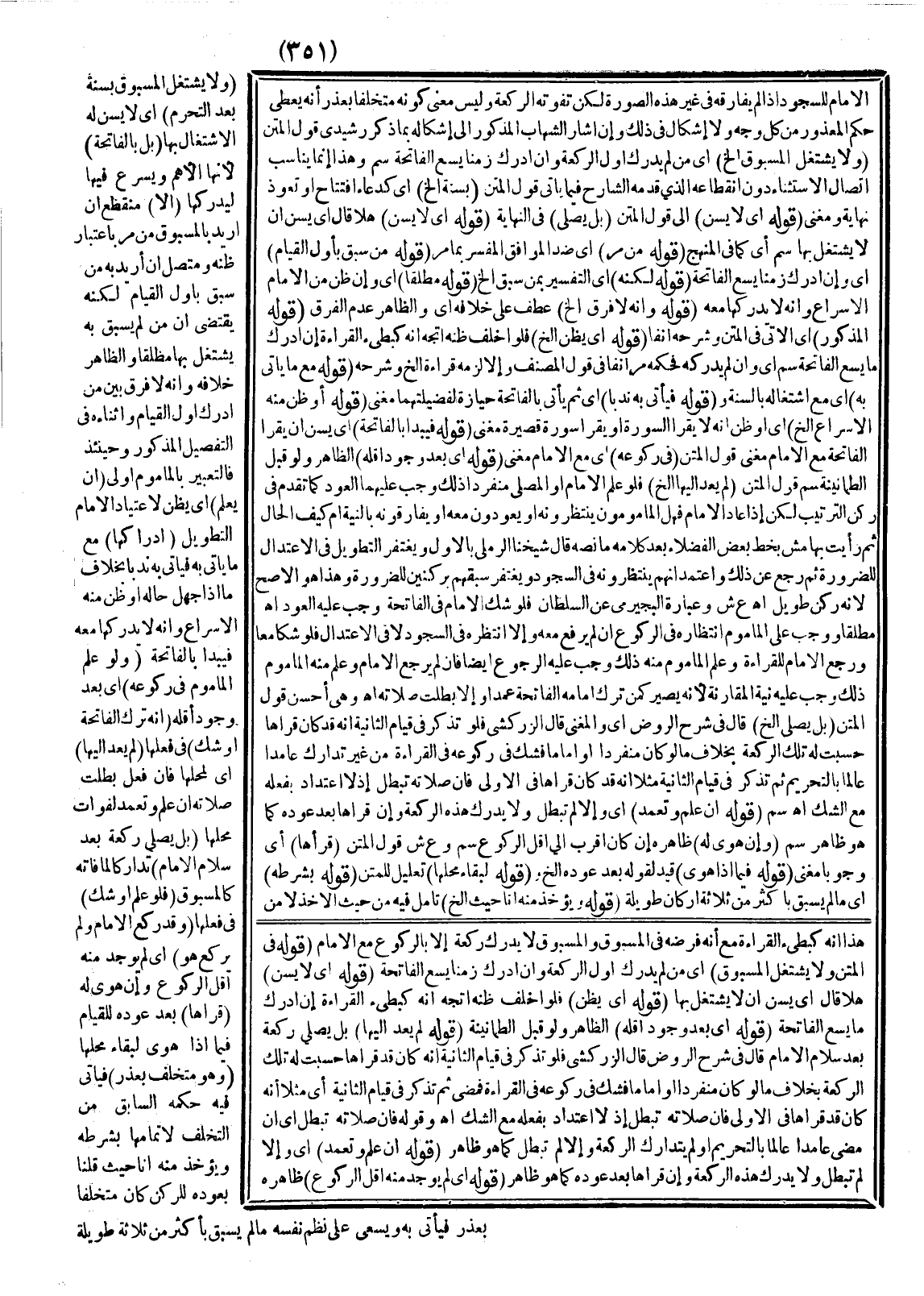 ـــــــــــــــــــــــــــــQالْإِمَامِ لِلسُّجُودِ إذَا لَمْ يُفَارِقْهُ فِي غَيْرِ هَذِهِ الصُّورَةِ لَكِنْ تَفُوتُهُ الرَّكْعَةُ وَلَيْسَ مَعْنَى كَوْنِهِ مُتَخَلِّفًا بِعُذْرٍ أَنَّهُ يُعْطَى حُكْمَ الْمَعْذُورِ مِنْ كُلِّ وَجْهٍ وَلَا إشْكَالَ فِي ذَلِكَ، وَإِنْ أَشَارَ الشِّهَابُ الْمَذْكُورُ إلَى إشْكَالِهِ بِمَا ذَكَرَ رَشِيدِيٌّ.