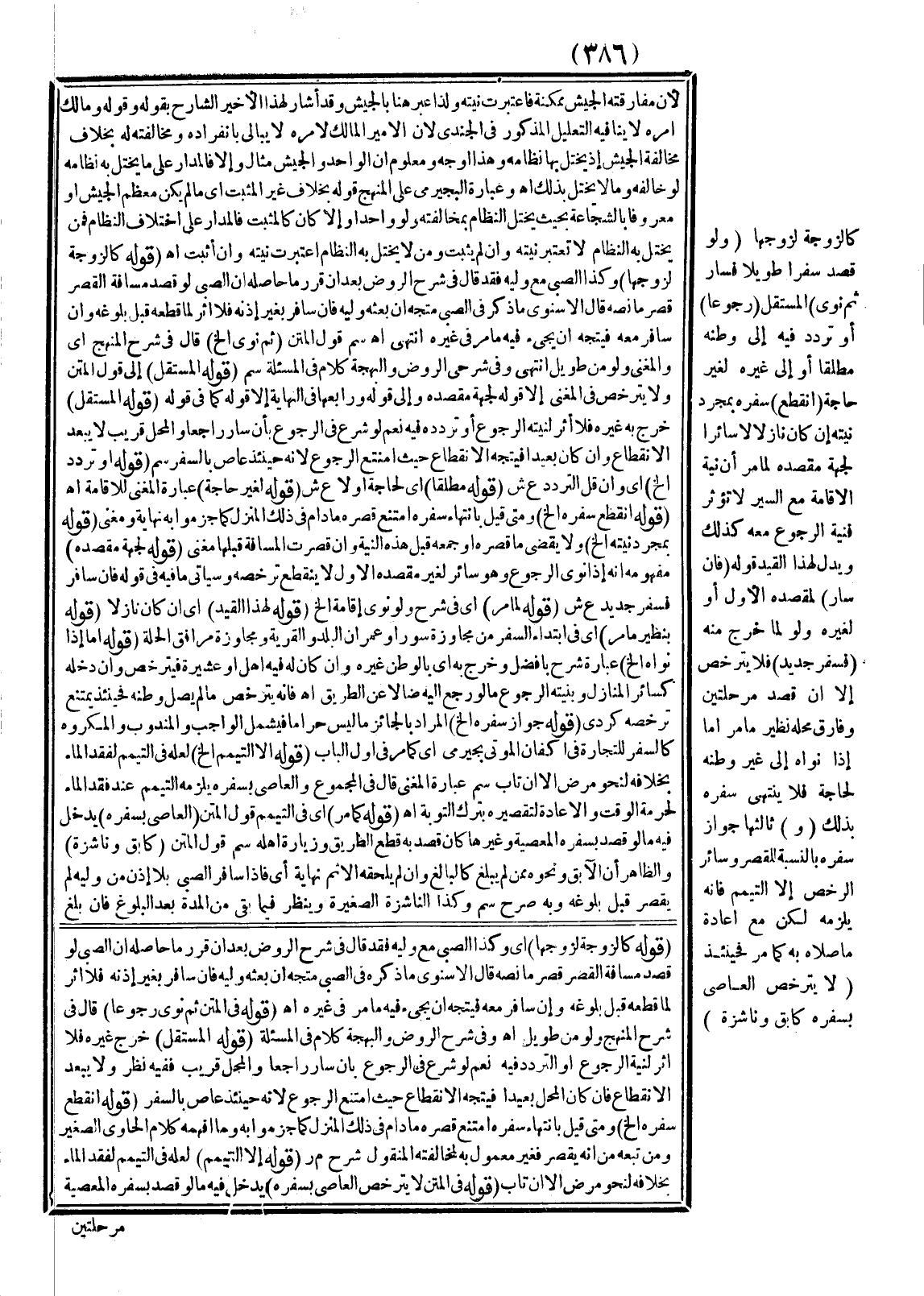 وَفِي شَرْحِ الرَّوْضِ وَالْبَهْجَةِ كَلَامٌ فِي الْمَسْأَلَةِ (قَوْلُهُ: الْمُسْتَقِلُّ) خَرَجَ غَيْرُهُ فَلَا أَثَرَ لِنِيَّةِ الرُّجُوعِ أَوْ التَّرَدُّدِ فِيهِ نَعَمْ لَوْ شَرَعَ فِي الرُّجُوعِ بِأَنْ سَارَ رَاجِعًا، وَالْمَحَلُّ قَرِيبٌ فَفِيهِ نَظَرٌ وَلَا يَبْعُدُ الِانْقِطَاعُ، فَإِنْ كَانَ الْمَحَلُّ بَعِيدًا فَيُتَّجَهُ الِانْقِطَاعُ حَيْثُ امْتَنَعَ الرُّجُوعُ؛ لِأَنَّهُ حِينَئِذٍ عَاصٍ بِالسَّفَرِ.