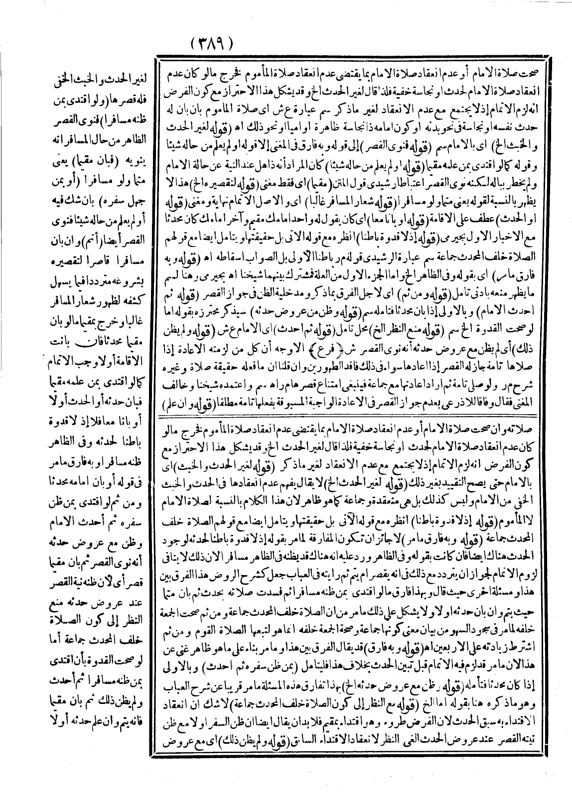 ـــــــــــــــــــــــــــــSصَلَاتِهِ، وَإِنْ صَحَّتْ صَلَاةُ الْإِمَامِ أَوْ عَدَمُ انْعِقَادِ صَلَاةِ الْإِمَامِ بِمَا يَقْتَضِي عَدَمَ انْعِقَادِ صَلَاةِ الْمَأْمُومِ فَخَرَجَ مَا لَوْ كَانَ عَدَمُ انْعِقَادِ صَلَاةِ الْإِمَامِ لِحَدَثٍ أَوْ نَجَاسَةٍ خَفِيَّةٍ فَلِذَا قَالَ لِغَيْرِ الْحَدَثِ إلَخْ وَقَدْ يُشْكِلُ هَذَا الِاحْتِرَازُ مَعَ كَوْنِ الْفَرْضِ أَنَّهُ لَزِمَ الْإِتْمَامُ إذْ لَا يَجْتَمِعُ مَعَ عَدَمِ الِانْعِقَادِ لِغَيْرِ مَا ذُكِرَ (قَوْلُهُ: لِغَيْرِ الْحَدَثِ وَالْخُبْثِ) أَيْ بِالْإِمَامِ حَتَّى يَصِحَّ التَّقْيِيدُ بِغَيْرِ ذَلِكَ (قَوْلُهُ: لِغَيْرِ الْحَدَثِ إلَخْ) لَا يُقَالُ يُفْهَمُ عَدَمُ انْعِقَادِهَا فِي الْحَدَثِ وَالْخُبْثِ الْخَفِيِّ مِنْ الْإِمَامِ وَلَيْسَ كَذَلِكَ بَلْ هِيَ مُنْعَقِدَةٌ وَجَمَاعَةٌ كَمَا هُوَ ظَاهِرٌ؛ لِأَنَّ هَذَا الْكَلَامَ بِالنِّسْبَةِ لِصَلَاةِ الْإِمَامِ لَا الْمَأْمُومِ.