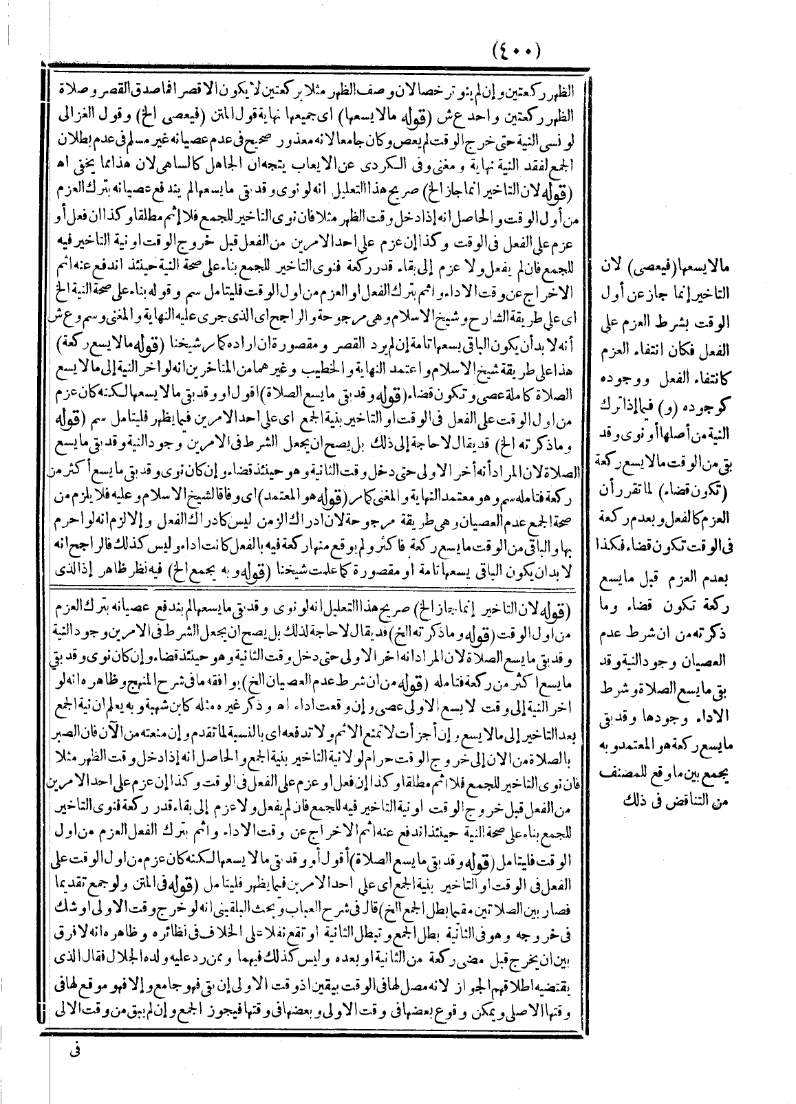 أَقُولُ أَوْ وَقَدْ بَقِيَ مَا لَا يَسَعُهَا لَكِنَّهُ كَانَ عَزَمَ مِنْ أَوَّلِ الْوَقْتِ عَلَى الْفِعْلِ فِي الْوَقْتِ أَوْ التَّأْخِيرِ بِنِيَّةِ الْجَمْعِ أَيْ عَلَى أَحَدِ الْأَمْرَيْنِ فِيمَا يَظْهَرُ فَلْيُتَأَمَّلْ.