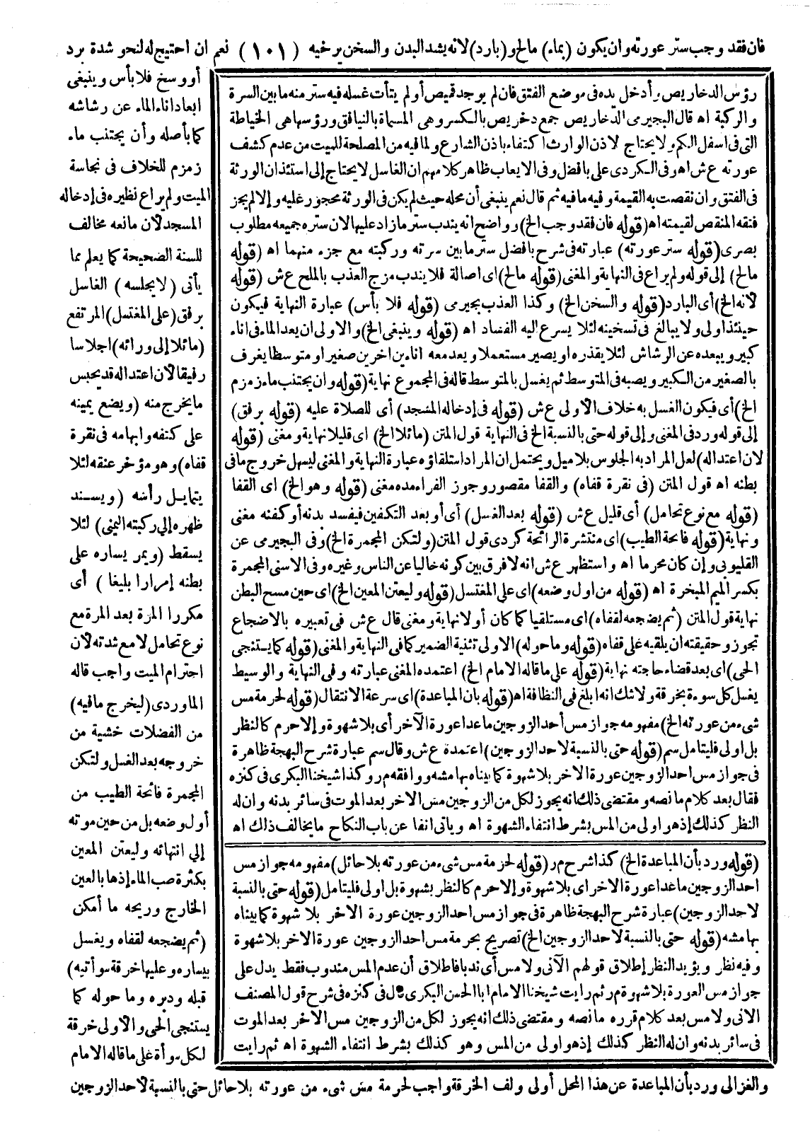 ـــــــــــــــــــــــــــــSقَوْلُهُ: وَرُدَّ بِأَنَّ الْمُبَاعَدَةَ إلَخْ) كَذَا شَرْحُ م ر (قَوْلُهُ: لِحُرْمَةِ مَسِّ شَيْءٍ مِنْ عَوْرَتِهِ بِلَا حَائِلٍ) مَفْهُومُهُ جَوَازُ مَسِّ أَحَدِ الزَّوْجَيْنِ مَا عَدَا عَوْرَةَ الْآخَرِ أَيْ بِلَا شَهْوَةٍ وَإِلَّا حَرُمَ كَالنَّظَرِ بِشَهْوَةٍ بَلْ أَوْلَى فَلْيُتَأَمَّلْ (قَوْلُهُ: حَتَّى بِالنِّسْبَةِ لِأَحَدِ الزَّوْجَيْنِ) عِبَارَةُ شَرْحِ الْبَهْجَةِ ظَاهِرَةٌ فِي جَوَازِ مَسِّ أَحَدِ الزَّوْجَيْنِ عَوْرَةَ الْآخَرِ بِلَا شَهْوَةٍ كَمَا بَيَّنَّاهُ بِهَامِشِهِ (قَوْلُهُ: حَتَّى بِالنِّسْبَةِ لِأَحَدِ الزَّوْجَيْنِ إلَخْ) تَصْرِيحٌ بِحُرْمَةِ مَسِّ أَحَدِ الزَّوْجَيْنِ عَوْرَةَ الْآخَرِ بِلَا شَهْوَةٍ وَفِيهِ نَظَرٌ وَيُؤَيِّدُ النَّظَرُ إطْلَاقَ قَوْلِهِمْ الْآتِي: وَلَا مَسَّ أَيْ نَدْبًا فَإِطْلَاقُ أَنَّ عَدَمَ الْمَسِّ مَنْدُوبٌ فَقَطْ يَدُلُّ عَلَى جَوَازِ مَسِّ الْعَوْرَةِ بِلَا شَهْوَةٍ م ر ثُمَّ رَأَيْتُ شَيْخَنَا الْإِمَامَ أَبَا الْحَسَنِ الْبَكْرِيَّ قَالَ فِي كَنْزِهِ فِي شَرْحِ قَوْلِ الْمُصَنِّفِ الْآتِي " وَلَا مَسَّ " بَعْدَ كَلَامٍ قَرَّرَهُ مَا نَصُّهُ: وَمُقْتَضَى ذَلِكَ أَنَّهُ يَجُوزُ لِكُلٍّ مِنْ الزَّوْجَيْنِ مَسُّ الْآخَرِ بَعْدَ الْمَوْتِ فِي سَائِرِ بَدَنِهِ وَأَنَّ لَهُ النَّظَرَ كَذَلِكَ إذْ هُوَ أَوْلَى مِنْ الْمَسِّ وَهُوَ كَذَلِكَ بِشَرْطِ انْتِفَاءِ الشَّهْوَةِ اهـ ثُمَّ رَأَيْتُ