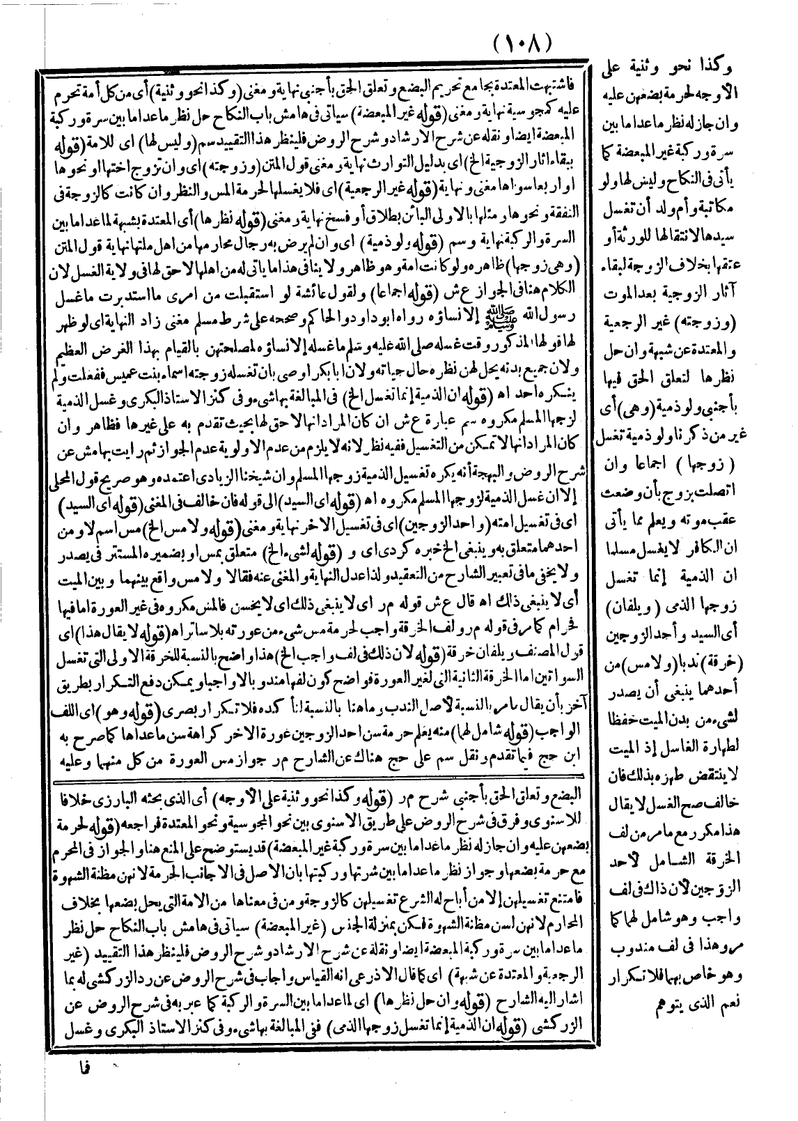 ـــــــــــــــــــــــــــــSالْبُضْعِ وَتَعَلُّقِ الْحَقِّ بِأَجْنَبِيٍّ شَرْحُ م ر (قَوْلُهُ: وَكَذَا نَحْوُ وَثَنِيَّةٍ عَلَى الْأَوْجَهِ) أَيْ الَّذِي بَحَثَهُ الْبَارِزِيُّ خِلَافًا لِلْإِسْنَوِيِّ وَفَرَّقَ فِي شَرْحِ الرَّوْضِ عَلَى طَرِيقِ الْإِسْنَوِيِّ بَيْنَ نَحْوِ الْمَجُوسِيَّةِ وَنَحْوِ الْمُعْتَدَّةِ فَرَاجِعْهُ (قَوْلُهُ: لِحُرْمَةِ بُضْعِهِنَّ عَلَيْهِ وَإِنْ جَازَ لَهُ نَظَرُ مَا عَدَا مَا بَيْنَ سُرَّةِ وَرُكْبَةِ غَيْرِ الْمُبَعَّضَةِ) قَدْ يُسْتَوْضَحُ عَلَى الْمَنْعِ هُنَا وَالْجَوَازِ فِي الْمَحْرَمِ مَعَ حُرْمَةِ بُضْعِهَا، وَجَوَازِ نَظَرِ مَا عَدَا مَا بَيْنَ سُرَّتِهَا وَرُكْبَتِهَا بِأَنَّ الْأَصْلَ فِي الْأَجَانِبِ الْحُرْمَةُ لِأَنَّهُنَّ مَظِنَّةُ الشَّهْوَةِ فَامْتَنَعَ تَغْسِيلُهُنَّ إلَّا مَنْ أَبَاحَ لَهُ الشَّرْعُ تَغْسِيلَهُنَّ كَالزَّوْجَةِ وَمَنْ فِي مَعْنَاهَا مِنْ الْأَمَةِ الَّتِي يَحِلُّ بُضْعُهَا بِخِلَافِ الْمَحَارِمِ لِأَنَّهُنَّ لَسْنَ مَظِنَّةَ الشَّهْوَةِ فَكُنَّ بِمَنْزِلَةِ الْجِنْسِ (قَوْلُهُ: غَيْرِ الْمُبَعَّضَةِ) سَيَأْتِي فِي هَامِشِ بَابِ النِّكَاحِ حِلُّ نَظَرِ مَا عَدَا مَا بَيْنَ سُرَّةِ وَرُكْبَةِ الْمُبَعَّضَةِ أَيْضًا وَنَقَلَهُ عَنْ شَرْحِ الْإِرْشَادِ وَشَرْحِ الرَّوْضِ فَلْيُنْظَرْ هَذَا التَّقْيِيدُ (قَوْلُهُ: غَيْرَ الرَّجْعِيَّةِ وَالْمُعْتَدَّةِ عَنْ شُبْهَةٍ) أَيْ كَمَا قَالَ الْأَذْرَعِيُّ أَنَّهُ الْقِيَاسُ وَأَجَابَ فِي شَرْحِ الرَّوْضِ عَنْ رَدِّ الزَّرْكَشِيّ لَهُ بِمَا أَشَارَ إلَيْهِ الشَّارِحُ (قَوْلُهُ: وَإِنْ حَلَّ نَظَرُهَا) أَيْ لِمَا عَدَا مَا بَيْنَ السُّرَّةِ وَالرُّكْبَةِ كَمَا عَبَّرَ بِهِ فِي شَرْحِ الرَّوْضِ عَنْ الزَّرْكَشِيّ (قَوْلُهُ: أَنَّ الذِّمِّيَّةَ إنَّمَا تُغَسِّلُ زَوْجَهَا الذِّمِّيَّ) فَفِي الْمُبَالَغَةِ بِهَا شَيْءٌ وَفِي كَنْزِ الْأُسْتَاذِ الْبَكْرِيِّ وَغَسْلُ
