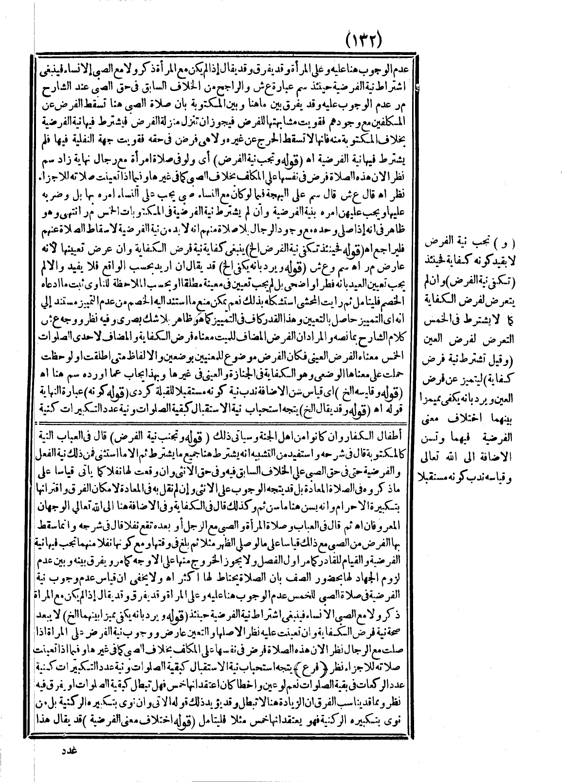 ـــــــــــــــــــــــــــــQعَدَمُ الْوُجُوبِ هُنَا عَلَيْهِ وَعَلَى الْمَرْأَةِ وَقَدْ يُفَرَّقُ وَقَدْ يُقَالُ إذَا لَمْ يَكُنْ مَعَ الْمَرْأَةِ ذَكَرٌ وَلَا مَعَ الصَّبِيِّ إلَّا نِسَاءٌ فَيَنْبَغِي اشْتِرَاطُ نِيَّةِ الْفَرْضِيَّةِ حِينَئِذٍ سم عِبَارَةُ ع ش وَالرَّاجِحُ مِنْ الْخِلَافِ السَّابِقِ فِي حَقِّ الصَّبِيِّ عِنْدَ الشَّارِحِ م ر عَدَمُ الْوُجُوبِ عَلَيْهِ وَقَدْ يُفَرَّقُ بَيْنَ مَا هُنَا وَبَيْنَ الْمَكْتُوبَةِ بِأَنَّ صَلَاةَ الصَّبِيِّ هُنَا تُسْقِطُ الْفَرْضَ عَنْ الْمُكَلَّفِينَ مَعَ وُجُودِهِمْ فَقَوِيَتْ مُشَابَهَتُهَا لِلْفَرْضِ فَيَجُوزُ أَنْ تُنَزَّلَ مَنْزِلَةَ الْفَرْضِ فَيُشْتَرَطَ فِيهَا نِيَّةُ الْفَرِيضَةِ بِخِلَافِ الْمَكْتُوبَةِ مِنْهُ فَإِنَّهَا لَا تُسْقِطُ الْحَرَجَ عَنْ غَيْرِهِ وَلَا هِيَ فَرْضٌ فِي حَقِّهِ فَقَوِيَتْ جِهَةُ النَّفْلِيَّةِ فِيهَا فَلَمْ يُشْتَرَطْ فِيهَا نِيَّةُ الْفَرْضِيَّةِ اهـ.