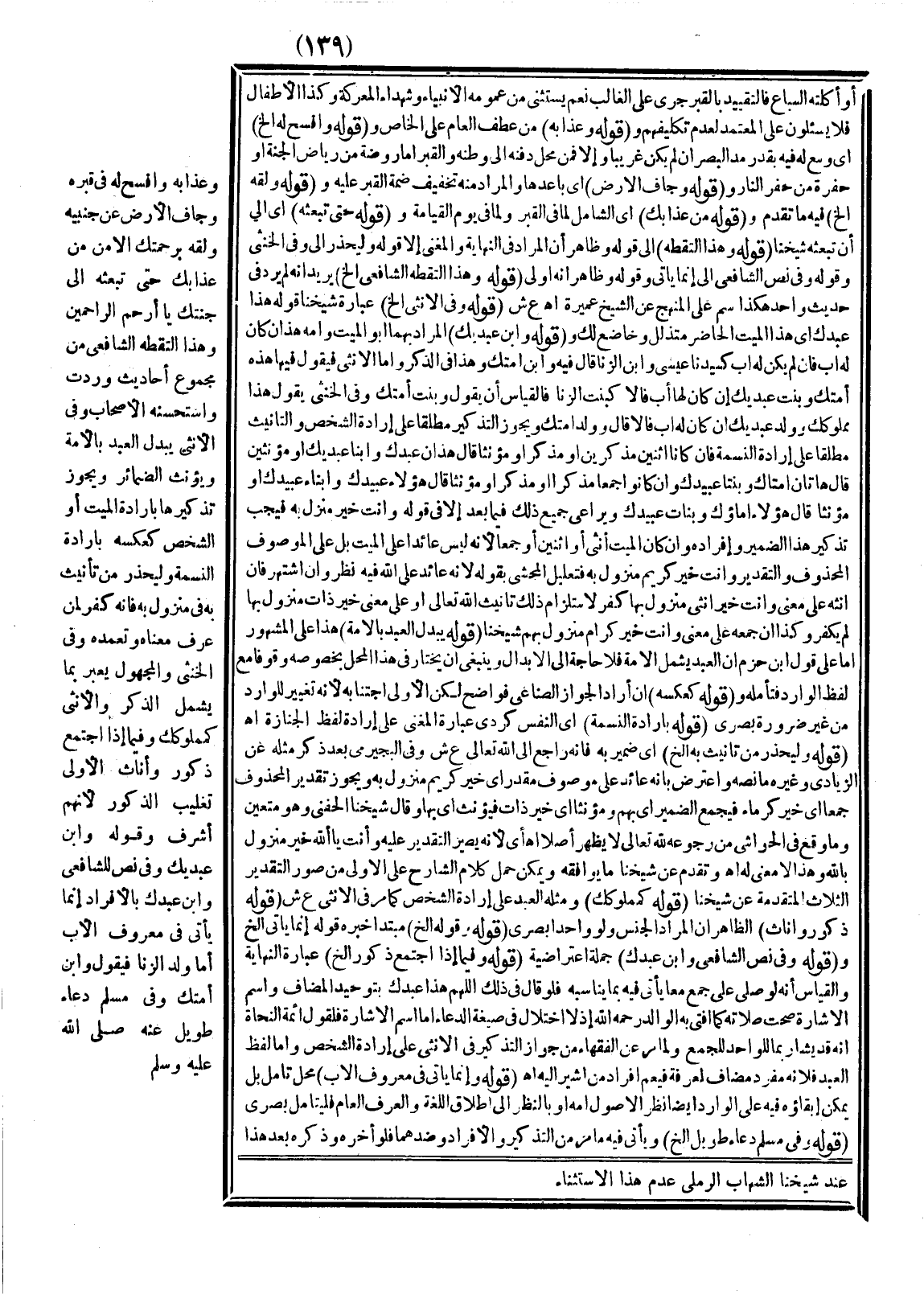 ـــــــــــــــــــــــــــــSعِنْدَ شَيْخِنَا الشِّهَابِ الرَّمْلِيِّ عَدَمُ هَذَا الِاسْتِثْنَاءِ.