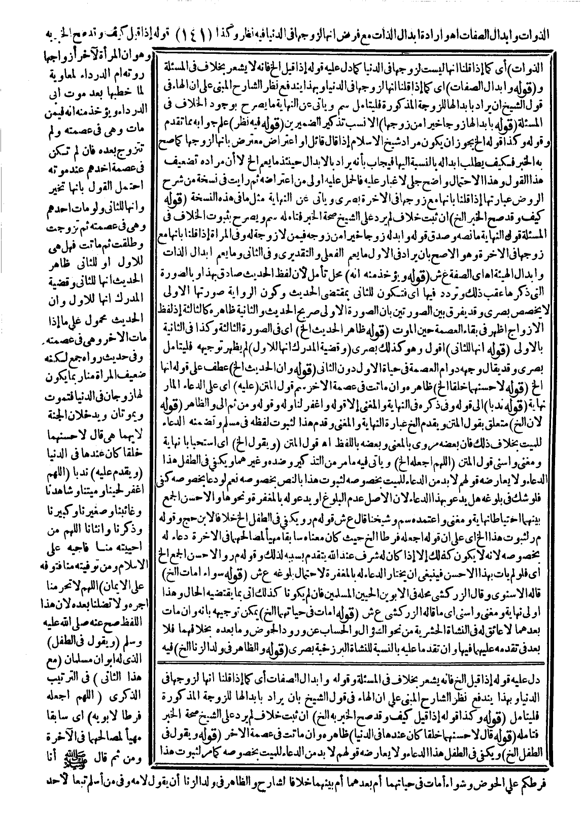 الذَّوَاتِ وَإِبْدَالَ الصِّفَاتِ اهـ وَإِرَادَةُ إبْدَالِ الذَّاتِ مَعَ فَرْضِ أَنَّهَا لِزَوْجِهَا فِي الدُّنْيَا فِيهِ نَظَرٌ وَكَذَا قَوْلُهُ إذَا قِيلَ كَيْفَ وَقَدْ صَحَّ الْخَبَرُ بِهِ وَهُوَ «أَنَّ الْمَرْأَةَ لِآخِرِ أَزْوَاجِهَا رَوَتْهُ أُمُّ الدَّرْدَاءِ لِمُعَاوِيَةَ لَمَّا خَطَبَهَا بَعْدَ مَوْتِ أَبِي الدَّرْدَاءِ» .