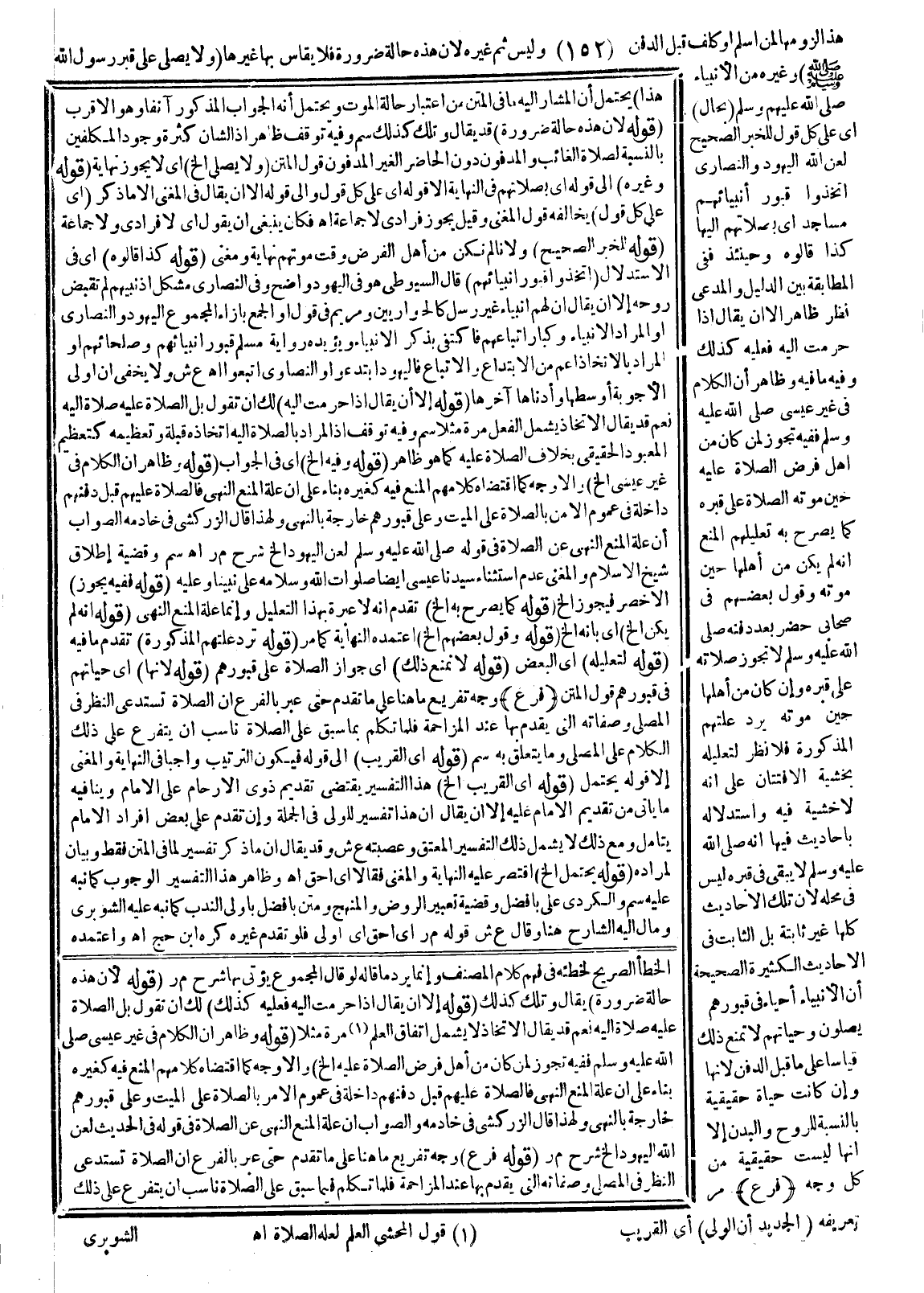 (قَوْلُهُ: إلَّا أَنْ يُقَالَ إذَا حَرُمَتْ إلَيْهِ فَعَلَيْهِ كَذَلِكَ) لَك أَنْ تَقُولَ بَلْ الصَّلَاةُ عَلَيْهِ صَلَاةٌ إلَيْهِ نَعَمْ قَدْ يُقَالُ الِاتِّخَاذُ لَا يَشْمَلُ اتِّفَاقَ الْعِلْمِ مَرَّةً مَثَلًا (قَوْلُهُ: وَظَاهِرٌ أَنَّ الْكَلَامَ فِي غَيْرِ عِيسَى - صَلَّى اللَّهُ عَلَيْهِ وَسَلَّمَ - فَفِيهِ تَجُوزُ لِمَنْ كَانَ مِنْ أَهْلِ فَرْضِ الصَّلَاةِ عَلَيْهِ إلَخْ) وَالْأَوْجَهُ كَمَا اقْتَضَاهُ كَلَامُهُمْ الْمَنْعُ فِيهِ كَغَيْرِهِ بِنَاءً عَلَى أَنَّ عِلَّةَ الْمَنْعِ النَّهْيُ فَالصَّلَاةُ عَلَيْهِمْ قَبْلَ دَفْنِهِمْ دَاخِلَةٌ فِي عُمُومِ الْأَمْرِ بِالصَّلَاةِ عَلَى الْمَيِّتِ، وَعَلَى قُبُورِهِمْ خَارِجَةٌ بِالنَّهْيِ وَلِهَذَا قَالَ الزَّرْكَشِيُّ فِي خَادِمِهِ: وَالصَّوَابُ أَنَّ عِلَّةَ الْمَنْعِ النَّهْيُ عَنْ الصَّلَاةِ فِي قَوْلِهِ فِي الْحَدِيثِ لَعَنَ اللَّهُ الْيَهُودَ إلَخْ شَرْحُ م ر.