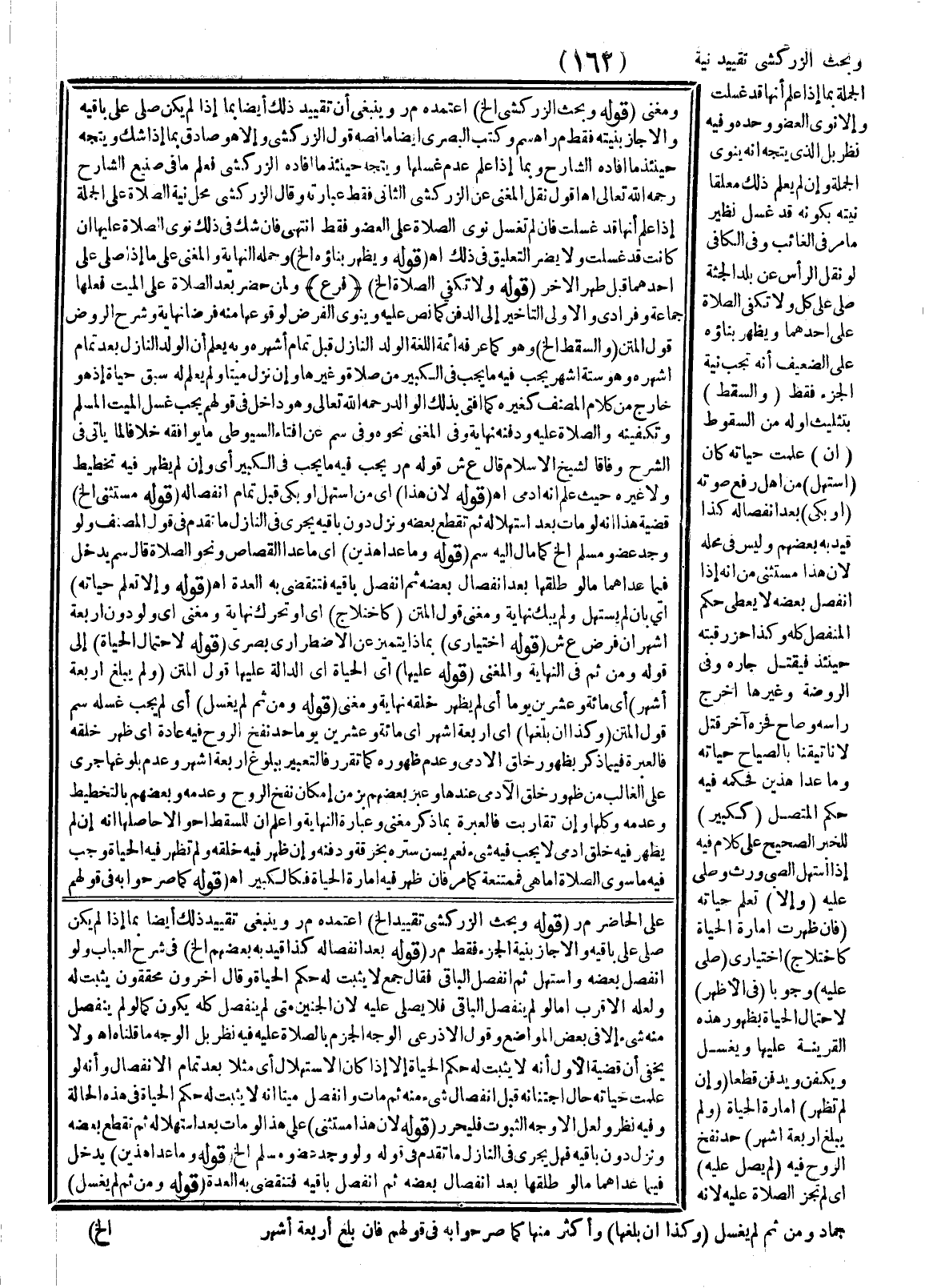 وَبَحَثَ الزَّرْكَشِيُّ تَقْيِيدَ نِيَّةِ الْجُمْلَةِ بِمَا إذَا عُلِمَ أَنَّهَا قَدْ غُسِّلَتْ وَإِلَّا نَوَى الْعُضْوَ وَحْدَهُ وَفِيهِ نَظَرٌ بَلْ الَّذِي يُتَّجَهُ أَنَّهُ يَنْوِي الْجُمْلَةَ وَإِنْ لَمْ يَعْلَمَ ذَلِكَ مُعَلِّقًا نِيَّتَهُ بِكَوْنِهِ قَدْ غُسِّلَ نَظِيرَ مَا مَرَّ فِي الْغَائِبِ وَفِي الْكَافِي لَوْ نُقِلَ الرَّأْسُ عَنْ بَلَدِ الْجُثَّةِ صُلِّيَ عَلَى كُلٍّ وَلَا تَكْفِي الصَّلَاةُ عَلَى أَحَدِهِمَا وَيَظْهَرُ بِنَاؤُهُ عَلَى الضَّعِيفِ أَنَّهُ تَجِبُ نِيَّةُ الْجُزْءِ فَقَطْ.