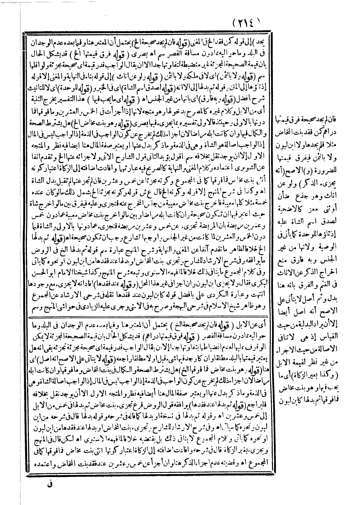 وَكَلَامُ الْمُغْنِي وَالنِّهَايَةِ كَالصَّرِيحِ فِيهِ عِبَارَتُهُمَا وَأَفَادَتْ إضَافَتُهُ إلَى الزَّكَاةِ اعْتِبَارَ كَوْنِهِ أُنْثَى بِنْتَ مَخَاضٍ فَمَا فَوْقَهَا كَمَا فِي الْمَجْمُوعِ وَكَوْنُهُ مُجْزِئًا عَنْ خَمْسٍ وَعِشْرِينَ فَإِنْ لَمْ تُجْزِ عَنْهَا لَمْ تُقْبَلْ بَدَلَ الشَّاةِ اهـ وَكَذَا فِي شَرْحِ الْمَنْهَجِ إلَّا قَوْلَهُ وَكَوْنُهُ إلَخْ قَالَ ع ش قَوْلُهُ: وَكَوْنُهُ مُجْزِئًا إلَخْ يَشْمَلُ ذَلِكَ مَا لَوْ كَانَ عِنْدَهُ خَمْسَةٌ مَثَلًا كُلُّهَا مَعِيبَةٌ فَأَخْرَجَ بِنْتَ مَخَاضٍ مَعِيبَةً مِنْ جِنْسِ الْمُخْرَجِ عَنْهُ فَتُجْزِئُ وَعَلَيْهِ فَيُفَرَّقُ بَيْنَ مَا لَوْ أَخْرَجَ شَاةً حَيْثُ اُعْتُبِرَ فِيهَا أَنْ تَكُونَ صَحِيحَةً، وَإِنْ كَانَتْ إبِلُهُ مِرَاضًا وَبَيْنَ مَا لَوْ أَخْرَجَ بِنْتَ مَخَاضٍ مَعِيبَةً عَمَّا دُونَ خَمْسٍ وَعِشْرِينَ مَرِيضَةً بِأَنَّ الْمَرِيضَةَ تُجْزِئُ عَنْ خَمْسٍ وَعِشْرِينَ مَرِيضَةً فَتُجْزِئُ عَمَّا دُونَهَا بِالْأَوْلَى، وَالشَّاةُ فِيمَا دُونَ الْخَمْسِ وَالْعِشْرِينَ لَمَّا كَانَتْ مِنْ غَيْرِ الْجِنْسِ وَأَوْجَبَهَا الشَّارِعُ وَجَبَ أَنْ تَكُونَ صَحِيحَةً اهـ.
