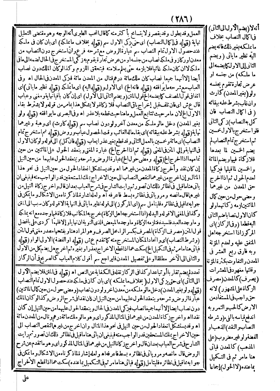 (قَوْلُهُ فِي الْمَتْنِ فَلَا يَضُمُّ الْأَوَّلَ إلَى الثَّانِي) أَيْ حَتَّى يُزَكِّيَ الْأَوَّلَ (قَوْلُهُ بِخِلَافِ مَا يَمْلِكُهُ) أَيْ بِأَنْ كَانَ فِي مِلْكِهِ عِنْدَ حُصُولِ الْأَوَّلِ تَمَامَ النِّصَابِ (قَوْلُهُ وَلَوْ بِغَيْرِ الْمَعْدِنِ) دَخَلَ مَا لَوْ مَلَكَهُ مِنْ مَعْدِنٍ آخَرَ وَلَوْ دُونَ نِصَابٍ (قَوْلُهُ وَمَضَى حَوْلٌ مِنْ حِينِ كَمَالِ الْمِائَتَيْنِ) عِبَارَةُ الرَّوْضِ وَشَرْحُهُ وَيَنْعَقِدُ الْحَوْلُ عَلَيْهِمَا مِنْ حِينِ النَّيْلِ إنْ كَانَ نَقْدًا فِي شَرْحِ الرَّوْضِ وَكَذَا لَوْ كَانَ الْمِلْكُ دُونَ نِصَابٍ أَيْضًا إلَّا أَنَّهُمَا جَمِيعًا نِصَابٌ فَيُزَكِّي الْمَعْدِنَ فِي الْحَالِ وَيَنْعَقِدُ الْحَوْلُ عَلَيْهِمَا مِنْ حِينِ النَّيْلِ إنْ كَانَ نَقْدًا اهـ وَأَخْرَجَ زَكَاةَ الْمَعْدِنِ مِنْ غَيْرِهِمَا فِي الْمِثَالِ الْمَذْكُورِ أَيْ وَهُوَ مَا لَوْ مَلَكَ مِائَةَ دِرْهَمٍ وَنَالَ مِنْ الْمَعْدِنِ مِائَةً اهـ وَقَدْ يَسْتَنِدُ عَلَى انْعِقَادِ الْحَوْلِ مِنْ حِينِ النَّيْلِ فِي نَحْوِ هَذَا الْمِثَالِ وَإِنْ أَخْرَجَ مِنْ غَيْرِهِمَا لِنَقْصِ النِّصَابِ إلَى حِينِ الْإِخْرَاجِ بِمِلْكِ الْمُسْتَحِقِّينَ قَدْرَ الْوَاجِبِ مِنْهُ فَيَنْبَغِي أَنْ يَأْتِيَ هُنَا مَا قِيلَ فِي نَظَائِرِ ذَلِكَ إنْ تُصُوِّرَ ثُمَّ رَأَيْت الشَّارِحَ فِي شَرْحِ الْعُبَابِ بَعْدَ أَنْ قَالَ وَأَخْرَجَ زَكَاةَ النَّيْلِ مِنْ غَيْرِهِمَا فِي الْمِثَالِ الْمَذْكُورِ أَيْ وَهُوَ مَا تَقَدَّمَ عَنْ شَرْحِ الرَّوْضِ قَالَ مَا نَصُّهُ وَمَرَّ وَيَأْتِي فِي نَظَائِرِهِ بَسْطٌ فَاعْرِفْهُ اهـ.