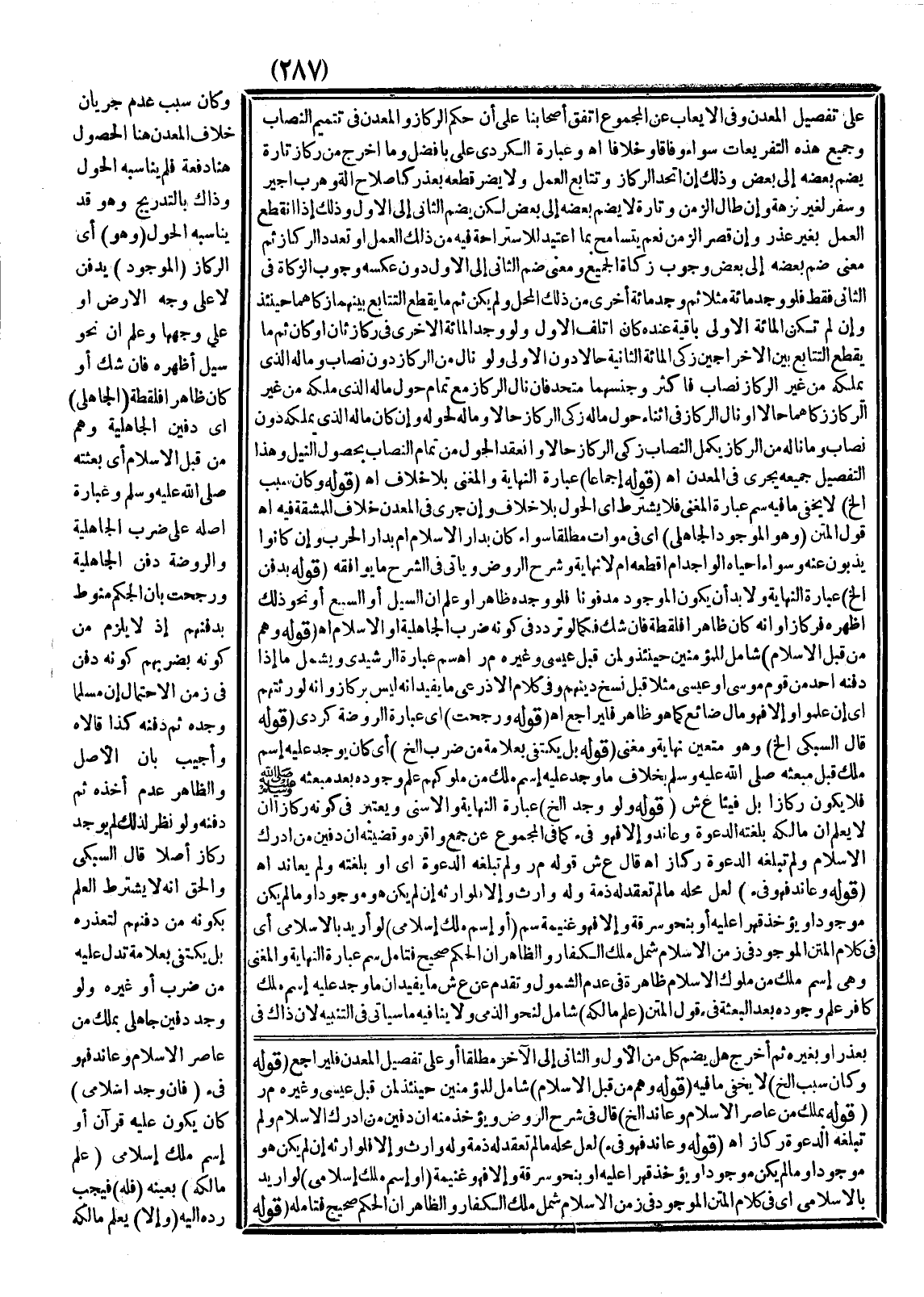 وَكَانَ سَبَبُ عَدَمِ جَرَيَانِ خِلَافِ الْمَعْدِنِ هُنَا الْحُصُولُ هُنَا دُفْعَةً فَلَمْ يُنَاسِبْهُ الْحَوْلُ وَذَاكَ بِالتَّدْرِيجِ وَهُوَ قَدْ يُنَاسِبُهُ الْحَوْلُ.