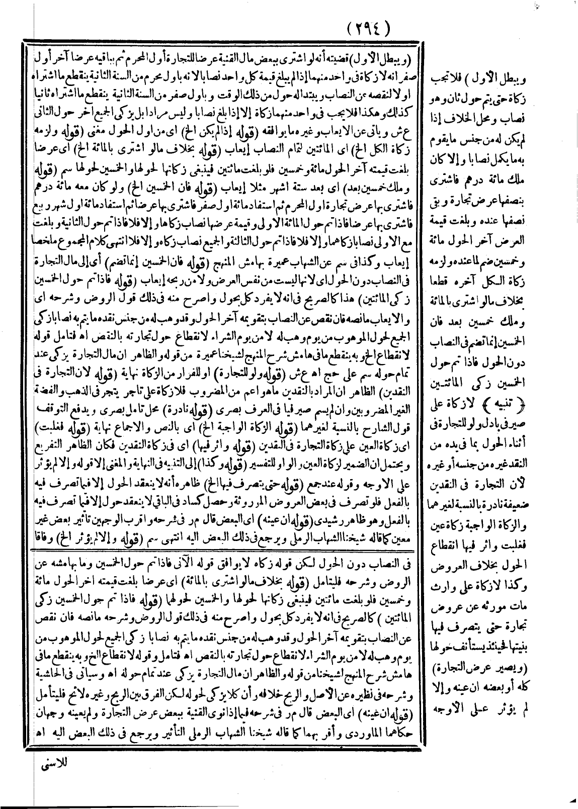 ـــــــــــــــــــــــــــــSفِي النِّصَابِ دُونَ الْحَوْلِ لَكِنَّ قَوْلَهُ زَكَاةً لَا يُوَافِقُ قَوْلَهُ الْآتِيَ فَإِذَا تَمَّ حَوْلُ الْخَمْسِينَ وَمَا بِهَامِشِهِ عَنْ الرَّوْضِ وَشَرْحِهِ فَلْيُتَأَمَّلْ