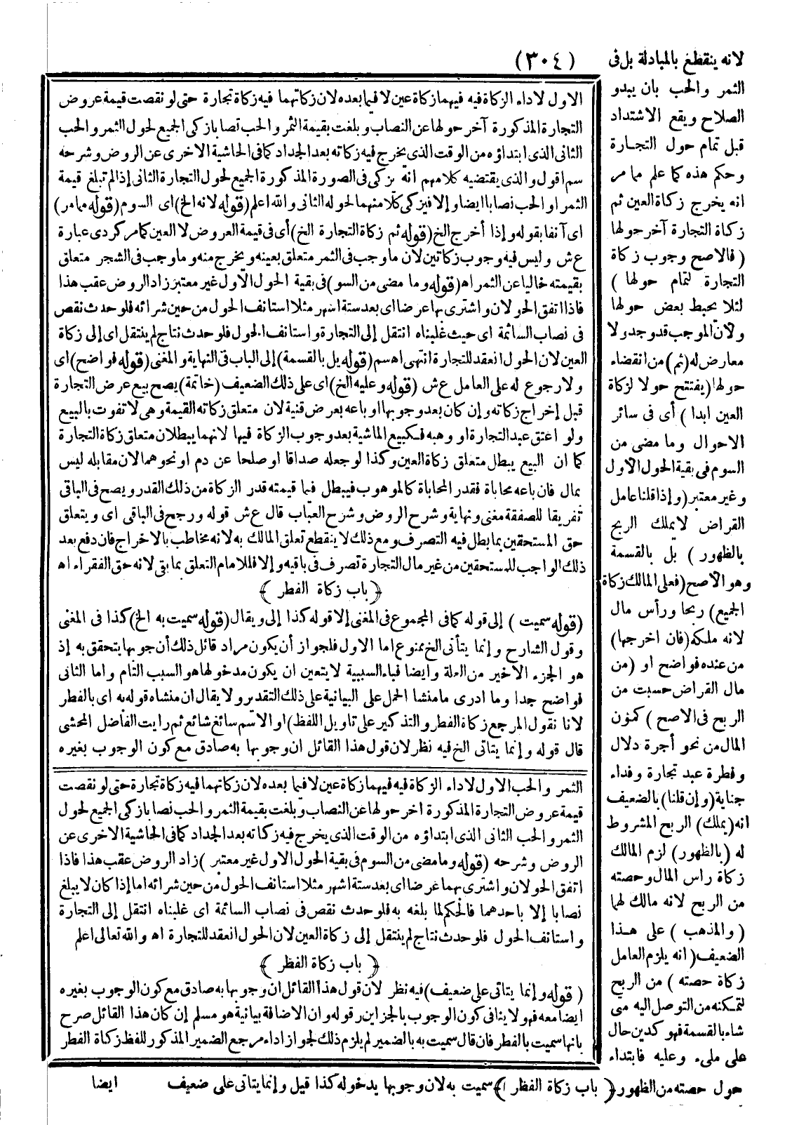أَقُولُ: وَاَلَّذِي يَقْتَضِيهِ كَلَامُهُمْ أَنَّهُ يُزَكِّي فِي الصُّورَةِ الْمَذْكُورَةِ الْجَمِيعَ لِحَوْلِ التِّجَارَةِ الثَّانِي إذَا لَمْ تَبْلُغْ قِيمَةُ الثَّمَرِ أَوْ الْحَبِّ نِصَابًا أَيْضًا وَإِلَّا فَيُزَكِّي كُلًّا مِنْهُمَا لِحَوْلِهِ الثَّانِي وَاَللَّهُ أَعْلَمُ (قَوْلُهُ؛ لِأَنَّهُ إلَخْ) أَيْ السَّوْمَ (قَوْلُهُ مِمَّا مَرَّ) أَيْ آنِفًا بِقَوْلِهِ وَإِذَا أَخْرَجَ إلَخْ (قَوْلُهُ ثُمَّ زَكَاةَ التِّجَارَةِ إلَخْ) أَيْ فِي قِيمَةِ الْعُرُوضِ لَا الْعَيْنِ كَمَا مَرَّ كُرْدِيٌّ عِبَارَةُ ع ش وَلَيْسَ فِيهِ وُجُوبُ زَكَاتَيْنِ؛ لِأَنَّ مَا وَجَبَ فِي الثَّمَرِ مُتَعَلِّقٌ بِعَيْنِهِ وَيُخْرَجُ مِنْهُ وَمَا وَجَبَ فِي الشَّجَرَةِ مُتَعَلِّقٌ بِقِيمَتِهِ خَالِيًا عَنْ الثَّمَرِ اهـ.
