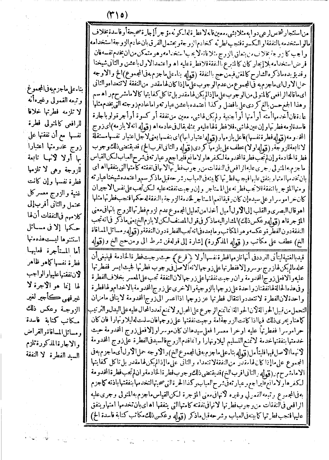 وَقَالَ الْبَصْرِيُّ وَالْقَلْبُ إلَى الْأَوَّلِ أَمْيَلُ أَخْذًا مِنْ تَعْلِيلِ الْمَجْمُوعِ عَدَمَ لُزُومِ فِطْرَتِهَا لِلزَّوْجِ بِأَنَّهَا فِي مَعْنَى الْمُؤَجَّرَةِ اهـ.
