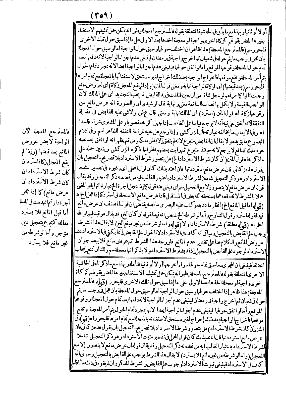 ثُمَّ رَأَيْت بَعْضَهُمْ نَظَرَ فِيمَا ذَكَرَهُ الزَّرْكَشِيُّ وَيَتَعَيَّنُ حَمْلُهُ عَلَى مَا ذَكَرْته اهـ قَوْلُ الْمَتْنِ (إنْ كَانَ شَرْطُ الِاسْتِرْدَادِ إلَخْ) هَلْ يُتَصَوَّرُ شَرْطُ الِاسْتِرْدَادِ بِلَا تَصْرِيحٍ بِالتَّعْجِيلِ بِأَنْ يَقُولَ هَذِهِ زَكَاتِي فَإِنْ عَرَضَ مَانِعٌ اسْتَرْدَدْتهَا فَإِنْ اُعْتُدَّ بِذَلِكَ كَانَ قَوْلُ الْمَحَلِّيِّ أَيْ وَغَيْرِهِ فِي تَفْسِيرِ مُثْبِتِ الِاسْتِرْدَادِ وَهُوَ ذِكْرُ التَّعْجِيلِ شَامِلًا لِشَرْطِ الِاسْتِرْدَادِ بِاعْتِبَارِ الْغَالِبِ فِيهِ مِنْ تَضَمُّنِهِ ذِكْرِ التَّعْجِيلِ وَقَدْ يُقَالُ قَوْلُهُ إنْ عَرَضَ مَانِعٌ لَا يُتَصَوَّرُ إلَّا مَعَ التَّعْجِيلِ سم أَيْ فَيُغْنِي عَنْهُ قَوْلُهُ كَمَا إذَا عَجَّلَ أُجْرَةً إلَخْ عِبَارَةُ النِّهَايَةِ وَالْمُغْنِي عَمَلًا بِالشَّرْطِ؛ لِأَنَّهُ دَفَعَهُ عَمَّا يَسْتَحِقُّهُ الْقَابِضُ فِي الْمُسْتَقْبَلِ فَإِذَا عَرَضَ مَانِعُ الِاسْتِحْقَاقِ اُسْتُرِدَّ كَمَا إذَا عَجَّلَ إلَخْ اهـ.
