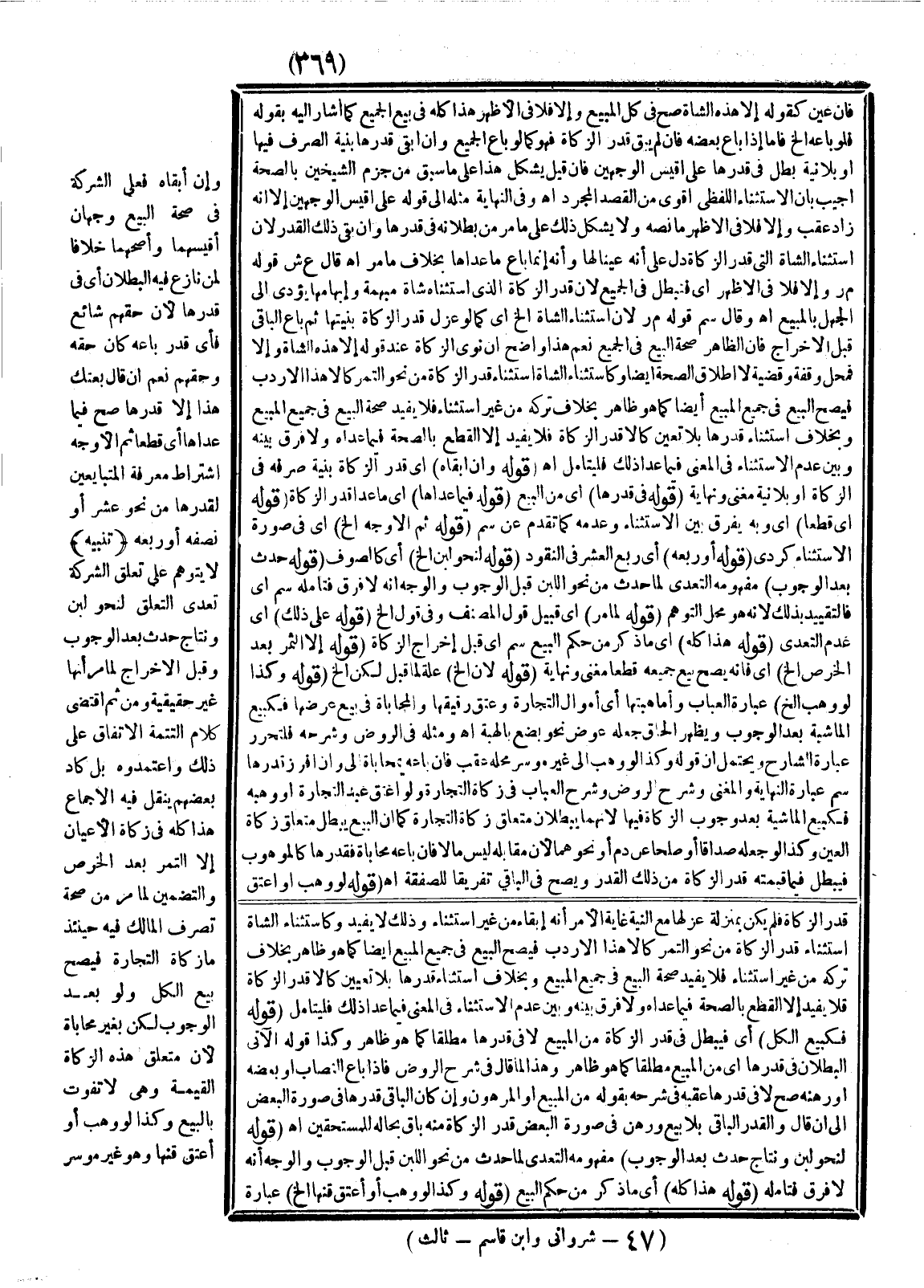 ـــــــــــــــــــــــــــــSقَدْرَ الزَّكَاةِ فَلَمْ يَكُنْ بِمَنْزِلَةِ عَزْلِهَا مَعَ النِّيَّةِ غَايَةُ الْأَمْرِ أَنَّهُ أَبْقَاهُ مِنْ غَيْرِ اسْتِثْنَاءٍ وَذَلِكَ لَا يُفِيدُ وَكَاسْتِثْنَاءِ الشَّاةِ اسْتِثْنَاءُ قَدْرِ الزَّكَاةِ مِنْ نَحْوِ التَّمْرِ كَإِلَّا هَذَا الْإِرْدَبَّ فَيَصِحُّ الْبَيْعُ فِي جَمِيعِ الْمَبِيعِ أَيْضًا كَمَا هُوَ ظَاهِرٌ بِخِلَافِ تَرْكِهِ مِنْ غَيْرِ اسْتِثْنَاءٍ فَلَا يُفِيدُ صِحَّةَ الْبَيْعِ فِي جَمِيعِ الْمَبِيعِ وَبِخِلَافِ اسْتِثْنَاءِ قَدْرِهَا بِلَا تَعْيِينٍ كَإِلَّا قَدْرَ الزَّكَاةِ فَلَا يُفِيدُ إلَّا الْقَطْعَ بِالصِّحَّةِ فِيمَا عَدَاهُ وَلَا فَرْقَ بَيْنَهُ وَبَيْنَ عَدَمِ الِاسْتِثْنَاءِ فِي الْمَعْنَى فِيمَا عَدَا ذَلِكَ فَلْيُتَأَمَّلْ.