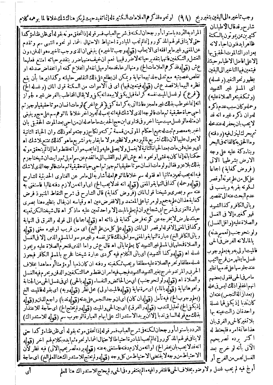 وَجَبَ تَأْخِيرُهُ إلَى الْيَقِينِ بِتَغَيُّرِ رِيحٍ أَوْ نَحْوِهِ فَذِكْرُهُمْ الْعَلَامَاتِ الْكَثِيرَةَ لَهُ إنَّمَا تُفِيدُ حَيْثُ لَمْ يَكُنْ هُنَاكَ شَكٌّ خِلَافًا لِمَا يُوهِمُهُ كَلَامُ شَارِحٍ وَقَدْ قَالَ الْأَطِبَّاءُ: إنَّ كَثِيرِينَ مِمَّنْ يَمُوتُونَ بِالسَّكْتَةِ ظَاهِرًا يُدْفَنُونَ أَحْيَاءً لِأَنَّهُ يَعِزُّ إدْرَاكُ الْمَوْتِ الْحَقِيقِيِّ بِهَا إلَّا عَلَى أَفَاضِلِ الْأَطِبَّاءِ وَحِينَئِذٍ فَيَتَعَيَّنُ فِيهَا التَّأْخِيرُ إلَى الْيَقِينِ بِظُهُورِ نَحْوِ التَّغَيُّرِ.