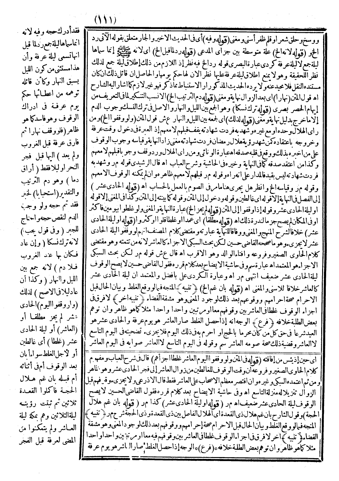 وَفِي حَاشِيَةِ الْإِيضَاحِ بَعْدَ كَلَامٍ قَرَّرَهُ فَقَوْلُ الْقَاضِي الْحُسَيْنِ لَا يَصِحُّ الْوُقُوفُ لَيْلَةَ الْحَادِيَ عَشَرَ ضَعِيفٌ اهـ م ر (قَوْلُهُ: أَوْ لَيْلَةَ الْحَادِيَ عَشَرَ) كَذَا م ر (قَوْلُهُ: بِأَنْ غُمَّ هِلَالُ الْحِجَّةِ) وَقَوْلُ الشَّارِحِ بِأَنْ غُمَّ هِلَالُ ذِي الْقَعْدَةِ أَيْ الْهِلَالُ الْفَاصِلُ بَيْنَ ذِي الْقَعْدَةِ وَذِي الْحِجَّةِ شَرْحُ م ر (تَنْبِيهٌ) الْمُتَّجَهُ فِيمَا لَوْ وَقَعَ الْغَلَطُ وَبَيَانُ الْحَالِ قَبْلَ الْإِحْرَامِ صِحَّةُ إحْرَامِهِمْ وَوُقُوفُهُمْ بَعْدَ ذَلِكَ لِوُجُودِ الْمَعْنَى، وَهُوَ مَشَقَّةُ الْقَضَاءِ (تَنْبِيهٌ) آخَرُ لَا فَرْقَ فِي إجْزَاءِ الْوُقُوفِ غَلَطًا فِي الْعَاشِرِ بَيْنَ وُقُوفِهِمْ فِيهِ مَعًا أَوْ مُرَتَّبِينَ وَاحِدًا وَاحِدًا مَثَلًا كَمَا هُوَ ظَاهِرٌ، وَإِنْ تَوَهَّمَ بَعْضُ الطَّلَبَةِ خِلَافَهُ (فَرْعٌ) الْوَجْهُ أَنَّهُ إذَا حَصَلَ الْغَلَطُ صَارَ الْعَاشِرُ هُوَ يَوْمَ عَرَفَةَ