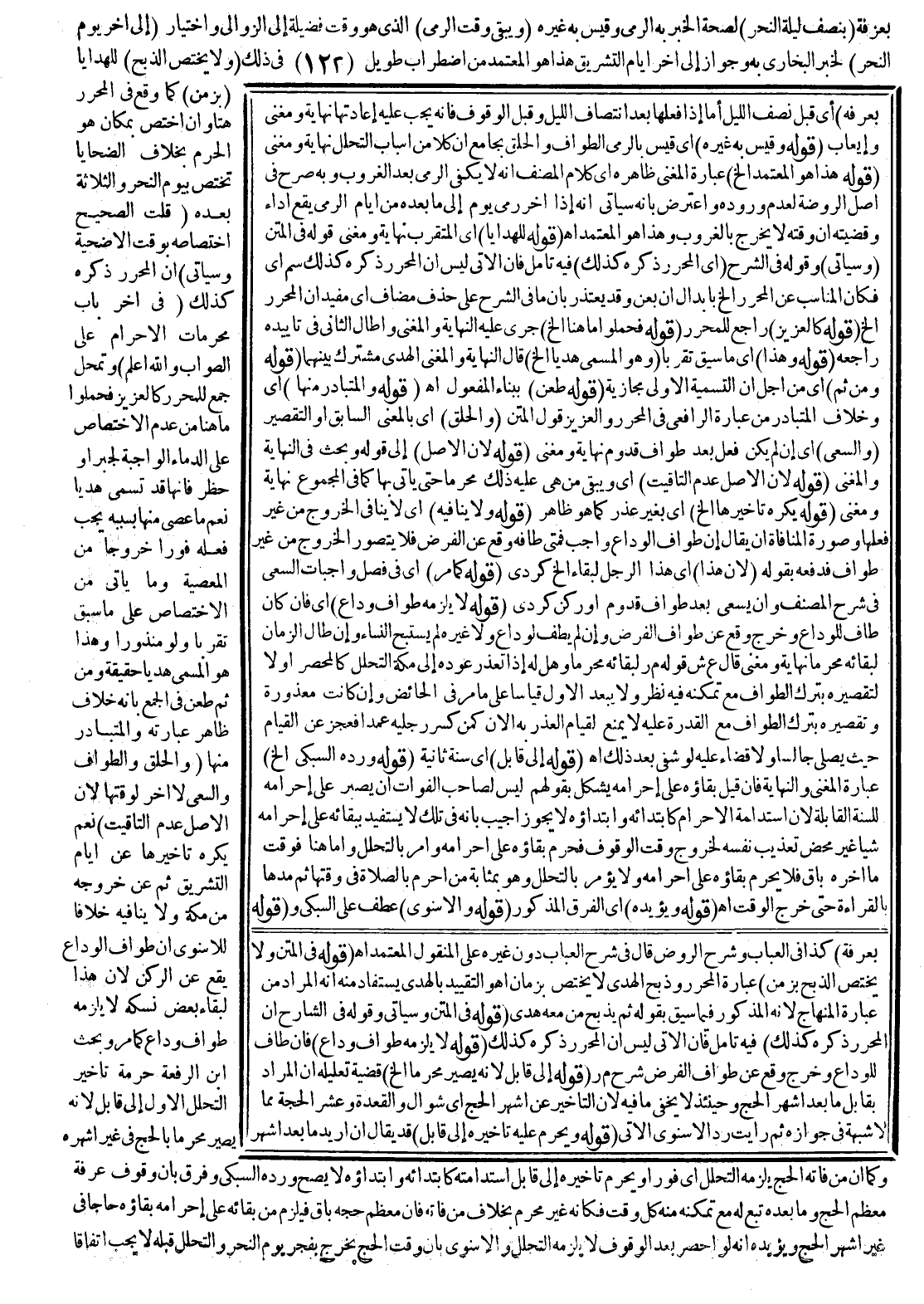 (قَوْلُهُ: فِي الْمَتْنِ وَلَا يَخْتَصُّ الذَّبْحُ بِزَمَنٍ) عِبَارَةُ الْمُحَرَّرِ وَذَبْحُ الْهَدْيِ لَا يَخْتَصُّ بِزَمَانٍ اهـ. وَالتَّقْيِيدُ بِالْهَدْيِ يُسْتَفَادُ مِنْهُ أَنَّهُ الْمُرَادُ مِنْ عِبَارَةِ الْمِنْهَاجِ؛ لِأَنَّهُ الْمَذْكُورُ فِيمَا سَبَقَ بِقَوْلِهِ ثُمَّ يَذْبَحُ مَنْ مَعَهُ هَدْيٌ.