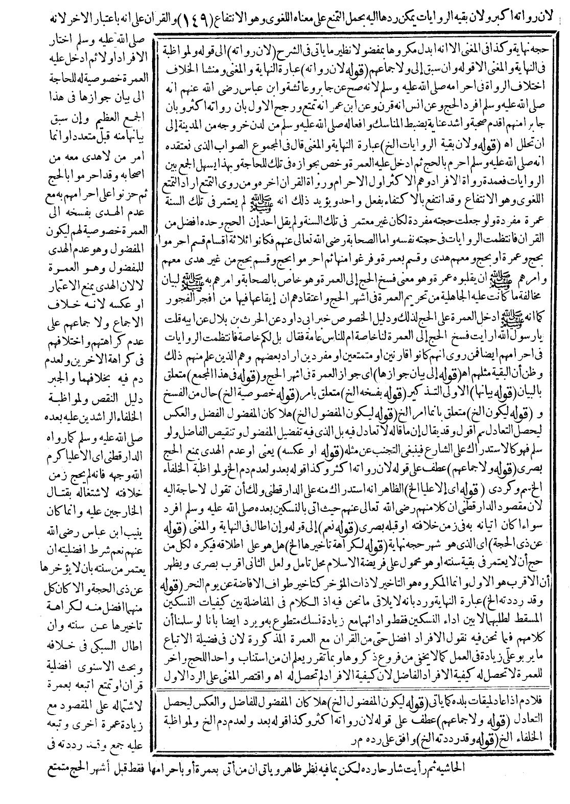 وَإِنَّمَا أَمَرَ مَنْ لَا هَدْيَ مَعَهُ مِنْ أَصْحَابِهِ وَقَدْ أَحْرَمُوا بِالْحَجِّ ثُمَّ حَزِنُوا عَلَى إحْرَامِهِمْ بِهِ مَعَ عَدَمِ الْهَدْيِ بِفَسْخِهِ إلَى الْعُمْرَةِ خُصُوصِيَّةً لَهُمْ لِيَكُونَ الْمَفْضُولُ، وَهُوَ عَدَمُ الْهَدْيِ لِلْمَفْضُولِ، وَهُوَ الْعُمْرَةُ لَا؛ لِأَنَّ الْهَدْيَ يَمْنَعُ الِاعْتِمَارَ أَوْ عَكْسُهُ؛ لِأَنَّهُ خِلَافُ الْإِجْمَاعِ وَلِإِجْمَاعِهِمْ عَلَى عَدَمِ كَرَاهَتِهِ وَاخْتِلَافِهِمْ فِي كَرَاهَةِ الْآخَرَيْنِ وَلِعَدَمِ دَمٍ فِيهِ بِخِلَافِهِمَا وَالْجَبْرُ دَلِيلُ النَّقْصِ وَلِمُوَاظَبَةِ الْخُلَفَاءِ الرَّاشِدِينَ عَلَيْهِ بَعْدَهُ - صَلَّى اللَّهُ عَلَيْهِ وَسَلَّمَ - كَمَا رَوَاهُ الدَّارَقُطْنِيّ أَيْ: إلَّا عَلِيًّا كَرَّمَ اللَّهُ وَجْهَهُ، فَإِنَّهُ لَمْ يَحُجَّ زَمَنَ خِلَافَتِهِ لِاشْتِغَالِهِ بِقِتَالِ الْخَارِجِينَ عَلَيْهِ، وَإِنَّمَا كَانَ يُنِيبُ ابْنَ عَبَّاسٍ - رَضِيَ اللَّهُ عَنْهُمْ - نَعَمْ شَرْطُ أَفْضَلِيَّتِهِ أَنْ يَعْتَمِرَ مِنْ سَنَتِهِ بِأَنْ لَا يُؤَخِّرَهَا عَنْ ذِي الْحِجَّةِ وَإِلَّا كَانَ كُلٌّ مِنْهُمَا أَفْضَلَ مِنْهُ لِكَرَاهَةِ تَأْخِيرِهَا عَنْ سَنَتِهِ، وَإِنْ أَطَالَ السُّبْكِيُّ فِي خِلَافِهِ وَبَحَثَ الْإِسْنَوِيُّ أَفْضَلِيَّةَ قِرَانٍ أَوْ تَمَتُّعٍ أَتْبَعَهُ بِعُمْرَةٍ لِاشْتِمَالِهِ عَلَى الْمَقْصُودِ مَعَ زِيَادَةِ عُمْرَةٍ أُخْرَى وَتَبِعَهُ عَلَيْهِ جَمْعٌ وَقَدْ رَدَدْته فِي الْحَاشِيَةِ ثُمَّ رَأَيْت شَارِحًا رَدَّهُ لَكِنْ بِمَا فِيهِ نَظَرٌ ظَاهِرٌ وَيَأْتِي أَنَّ مَنْ أَتَى بِعُمْرَةٍ، أَوْ بِإِحْرَامِهَا فَقَطْ قَبْلَ أَشْهُرِ الْحَجِّ مُتَمَتِّعٌ