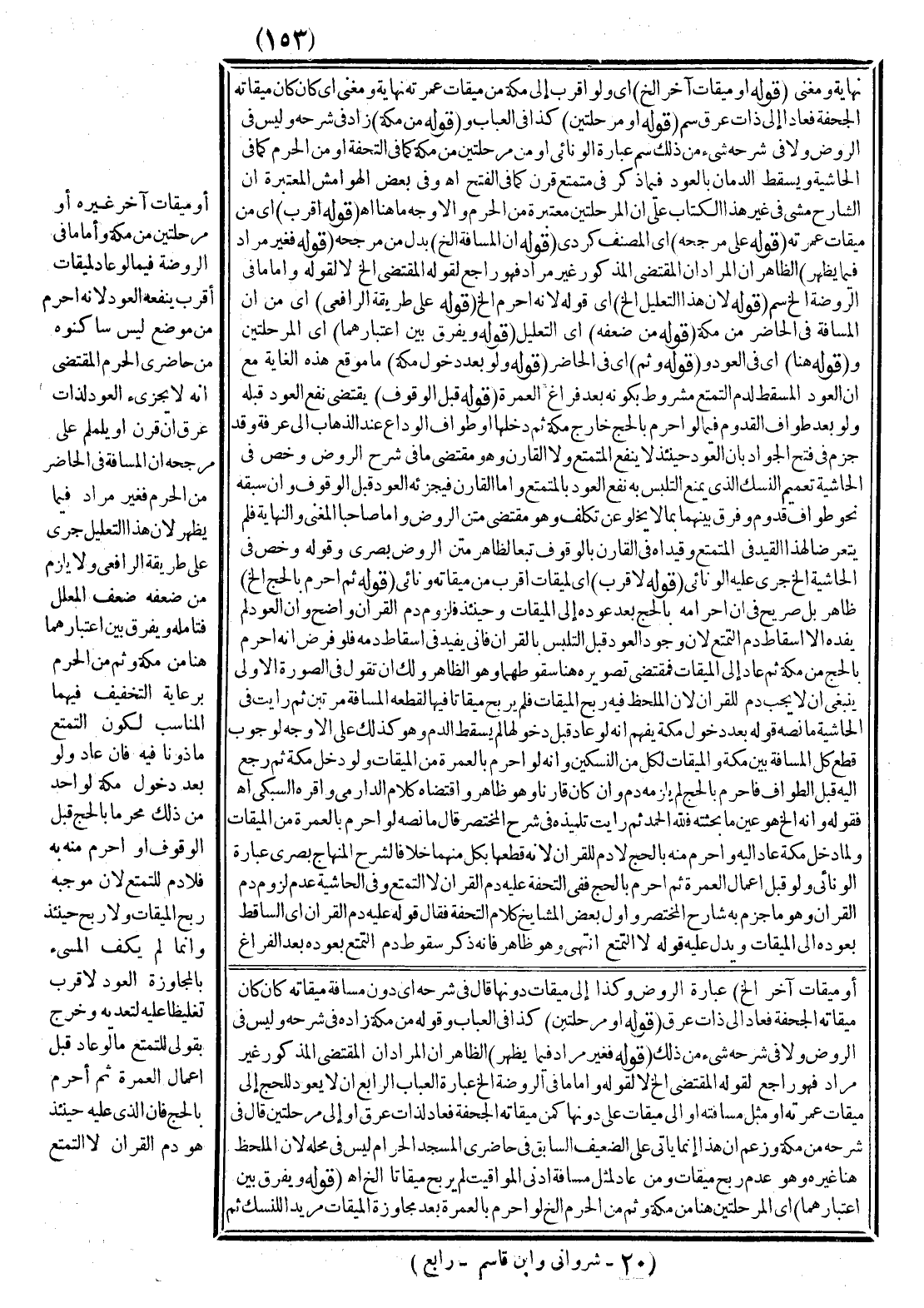 أَوْ مِيقَاتٍ آخَرَ غَيْرِهِ، أَوْ مَرْحَلَتَيْنِ مِنْ مَكَّةَ وَأَمَّا مَا فِي الرَّوْضَةِ فِيمَا لَوْ عَادَ لِمِيقَاتٍ أَقْرَبَ يَنْفَعُهُ الْعَوْدُ؛ لِأَنَّهُ أَحْرَمَ مِنْ مَوْضِعٍ لَيْسَ سَاكِنُوهُ مِنْ حَاضِرِي الْحَرَمِ الْمُقْتَضِي أَنَّهُ لَا يُجْزِئُ الْعَوْدُ لِذَاتِ عِرْقٍ، أَوْ قَرَنَ، أَوْ يَلَمْلَمُ عَلَى مُرَجِّحِهِ أَنَّ الْمَسَافَةَ فِي الْحَاضِرِ مِنْ الْحَرَمِ فَغَيْرُ مُرَادٍ فِيمَا يَظْهَرُ؛ لِأَنَّ هَذَا التَّعْلِيلَ جَرَى عَلَى طَرِيقَةِ الرَّافِعِيِّ وَلَا يَلْزَمُ مِنْ ضَعْفِهِ ضَعْفُ الْمُعَلَّلِ فَتَأَمَّلْهُ.