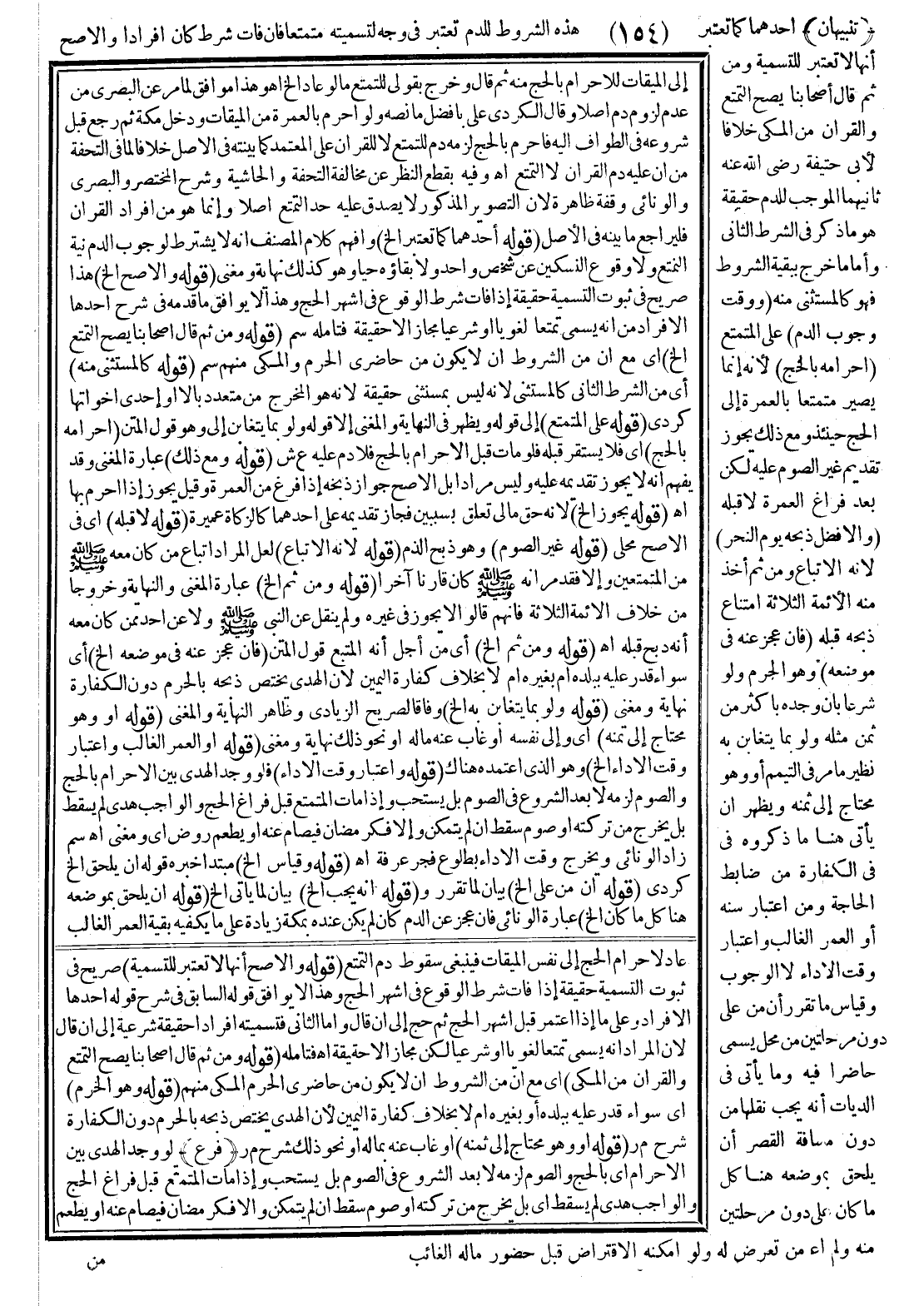 فَتَأَمَّلْهُ (قَوْلُهُ: وَمِنْ ثَمَّ قَالَ أَصْحَابُنَا يَصِحُّ التَّمَتُّعُ وَالْقِرَانُ مِنْ الْمَكِّيِّ) أَيْ مَعَ أَنَّ مِنْ الشُّرُوطِ أَنْ لَا يَكُونَ مِنْ حَاضِرِي الْحَرَمِ وَالْمَكِّيُّ مِنْهُمْ