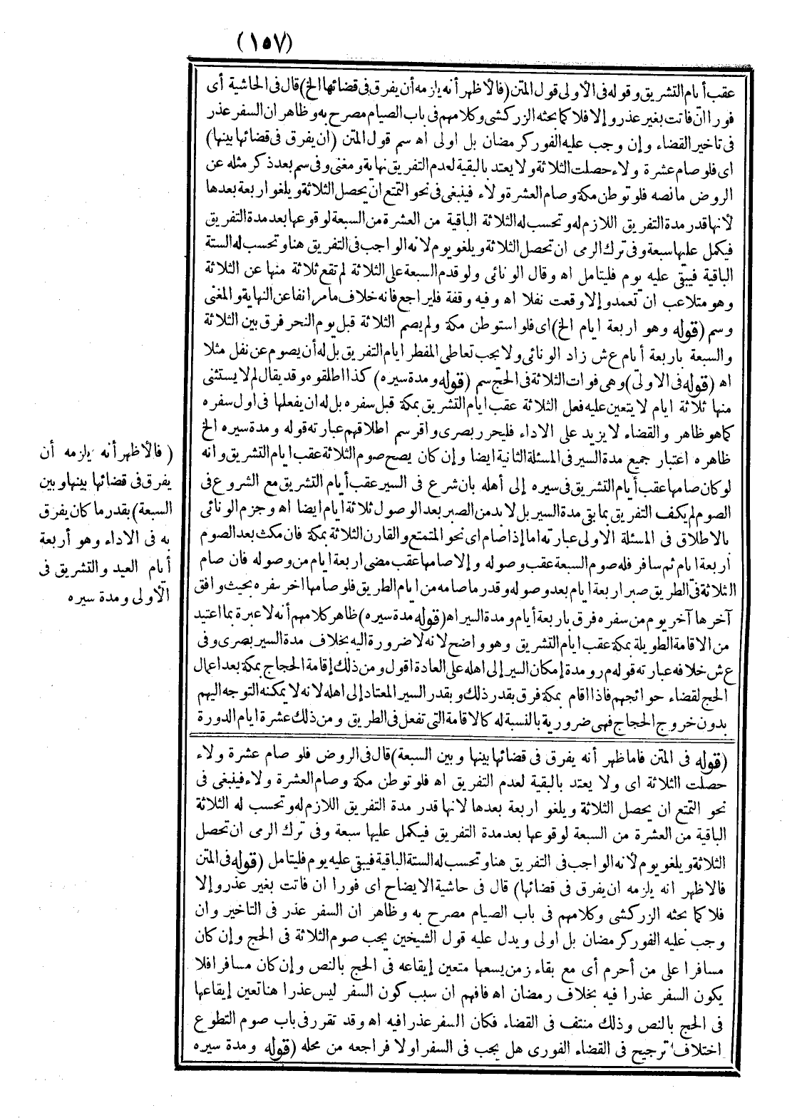 فَافْهَمْ أَنَّ سَبَبَ كَوْنِ السَّفَرِ لَيْسَ عُذْرًا هُنَا تَعَيُّنُ إيقَاعِهَا فِي الْحَجِّ بِالنَّصِّ وَذَلِكَ مُنْتَفٍ فِي الْقَضَاءِ فَكَانَ السَّفَرُ عُذْرًا فِيهِ اهـ.