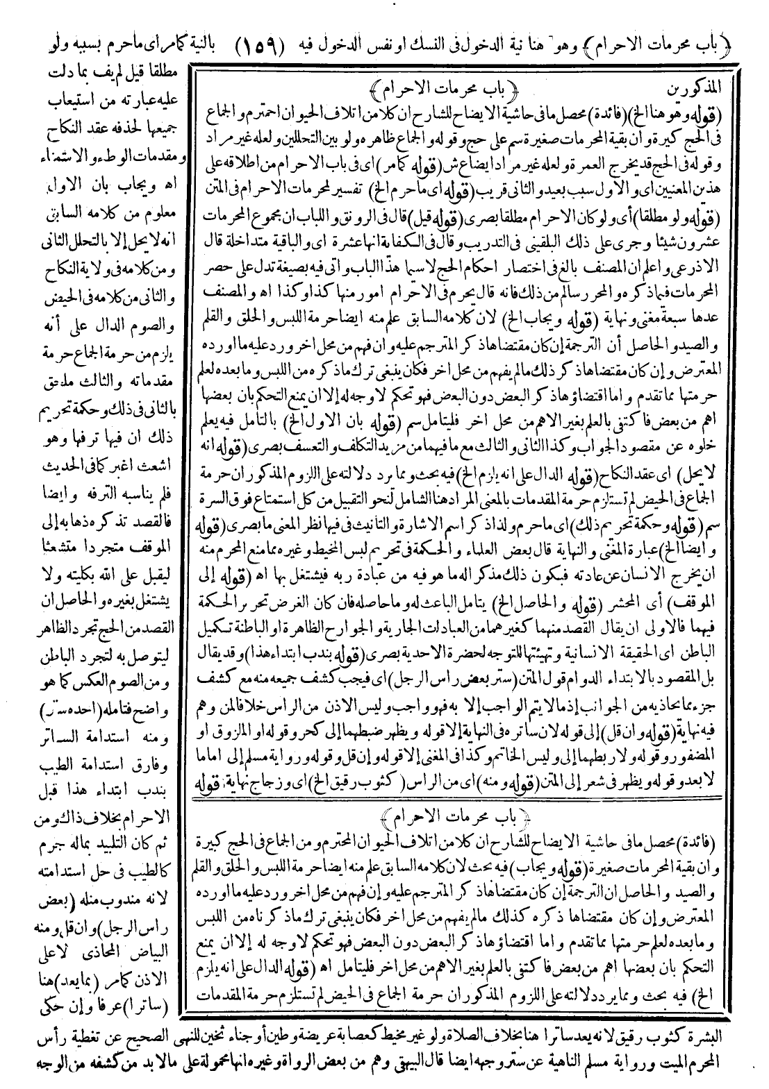 ـــــــــــــــــــــــــــــSبَابُ مُحَرَّمَاتِ الْإِحْرَامِ) (فَائِدَةٌ) مُحَصَّلُ مَا فِي حَاشِيَةِ الْإِيضَاحِ لِلشَّارِحِ أَنَّ كُلًّا مِنْ إتْلَافِ الْحَيَوَانِ الْمُحْتَرَمِ وَمِنْ الْجِمَاعِ فِي الْحَجِّ كَبِيرَةٌ، وَأَنَّ بَقِيَّةَ الْمُحَرَّمَاتِ صَغِيرَةٌ (قَوْلُهُ: وَيُجَابُ إلَخْ) فِيهِ بَحْثٌ؛ لِأَنَّ كَلَامَهُ السَّابِقَ عُلِمَ مِنْهُ أَيْضًا حُرْمَةُ اللُّبْسِ وَالْحَلْقِ وَالْقَلْمِ وَالصَّيْدِ وَالْحَاصِلُ أَنَّ التَّرْجَمَةَ إنْ كَانَ مُقْتَضَاهَا ذِكْرَ الْمُتَرْجِمِ عَلَيْهِ، وَإِنْ فُهِمَ مِنْ مَحَلٍّ آخَرَ وَرَدَ عَلَيْهِ مَا أَوْرَدَهُ الْمُعْتَرِضُ، وَإِنْ كَانَ مُقْتَضَاهَا ذِكْرَهُ كَذَلِكَ مَا لَمْ يُفْهَمْ مِنْ مَحَلٍّ آخَرَ فَكَانَ يَنْبَغِي تَرْكُ مَا ذَكَرْنَاهُ مِنْ اللُّبْسِ وَمَا بَعْدَهُ لِعِلْمِ حُرْمَتِهَا مِمَّا تَقَدَّمَ، وَأَمَّا اقْتِضَاؤُهَا ذِكْرَ الْبَعْضِ دُونَ الْبَعْضِ فَهُوَ تَحَكُّمٌ لَا وَجْهَ لَهُ إلَّا أَنْ يَمْنَعَ التَّحَكُّمَ بِأَنَّ بَعْضَهَا أَهَمُّ مِنْ بَعْضٍ فَاكْتَفَى بِالْعِلْمِ بِغَيْرِ الْأَهَمِّ مِنْ مَحَلٍّ آخَرَ فَلْيُتَأَمَّلْ. اهـ.