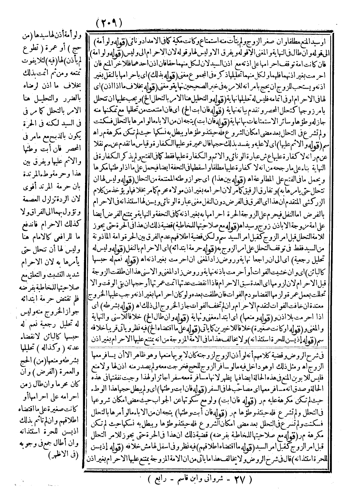 (قَوْلُهُ: مَعَ صَلَاحِيَّتِهَا لِلْمُخَاطَبَةِ بِفَرْضِهِ) قَضِيَّةُ ذَلِكَ أَنَّ هَذَا فِي الْحُرَّةِ حَتَّى يَجُوزَ لِلْآمِرِ التَّحَلُّلُ قَبْلَ أَمْرِ الزَّوْجِ كَقَبْلِ أَمْرِ السَّيِّدِ. (قَوْلُهُ: مَا اقْتَضَاهُ إطْلَاقُهُمْ) فِيهِ نَظَرٌ وَفِي أَسْفَلِ الْهَامِشِ خِلَافُهُ (قَوْلُهُ: إذْ يُسَنُّ لِلْحُرَّةِ اسْتِئْذَانُهُ) قَالَ فِي شَرْحِ الرَّوْضِ وَلَا يُخَالِفُ هَذَا مَا يَأْتِي مِنْ أَنَّ الْأَمَةَ الْمُزَوَّجَةَ يَمْتَنِعُ عَلَيْهَا الْإِحْرَامُ بِغَيْرِ إذْنِ