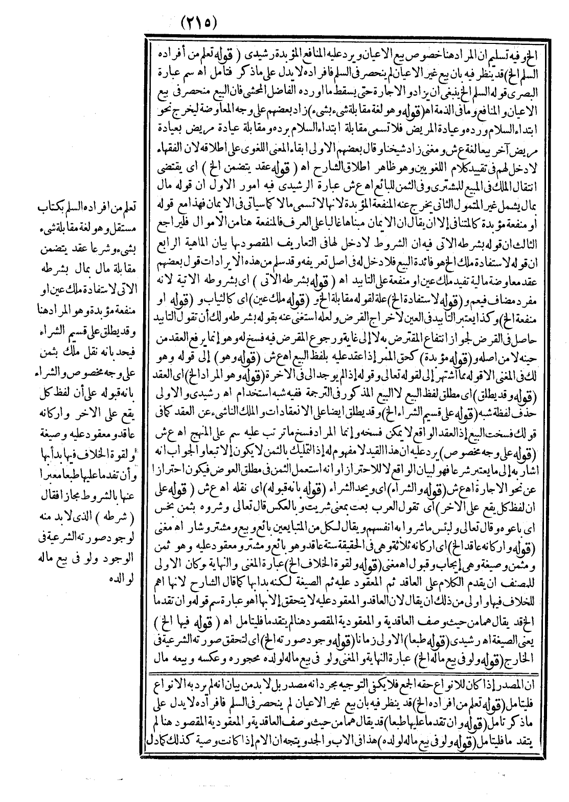 عِبَارَةُ الْبَصْرِيِّ قَوْلُهُ: السَّلَمِ إلَخْ يَنْبَغِي أَنْ يُزَادَ وَالْإِجَارَةُ حَتَّى يَسْقُطَ مَا أَوْرَدَهُ الْفَاضِلُ الْمُحَشِّي فَإِنَّ الْبَيْعَ مُنْحَصِرٌ فِي بَيْعِ الْأَعْيَانِ وَالْمَنَافِعِ وَمَا فِي الذِّمَّةِ. اهـ.