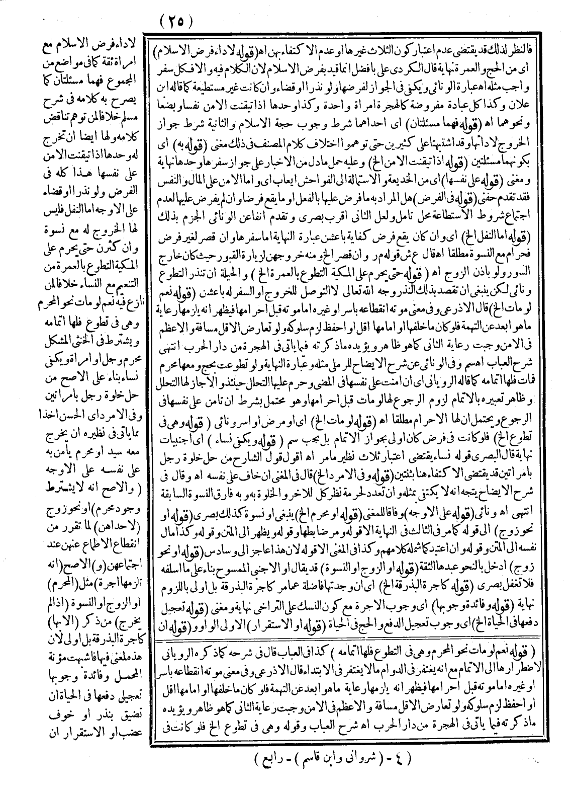 (قَوْلُهُ: لِأَدَاءِ فَرْضِ الْإِسْلَامِ) أَيْ: مِنْ الْحَجِّ وَالْعُمْرَةِ نِهَايَةٌ قَالَ الْكُرْدِيُّ عَلَى بَافَضْلٍ إنَّمَا قَيَّدَ بِفَرْضِ الْإِسْلَامِ؛ لِأَنَّ الْكَلَامَ فِيهِ وَإِلَّا فَكُلُّ سَفَرٍ وَاجِبٍ مِثْلُهُ اهـ عِبَارَةُ الْوَنَائِيِّ وَيَكْفِي فِي الْجَوَازِ لِفَرْضِهَا وَلَوْ نَذْرًا أَوْ قَضَاءً، وَإِنْ كَانَتْ غَيْرَ مُسْتَطِيعَةٍ كَمَا قَالَهُ ابْنُ عَلَّانٍ وَكَذَا كُلُّ عِبَادَةٍ مَفْرُوضَةٍ كَالْهِجْرَةِ امْرَأَةٌ وَاحِدَةٌ وَكَذَا وَحْدَهَا إذَا تَيَقَّنَتْ الْأَمْنَ نَفْسًا وَبُضْعًا وَنَحْوَهُمَا اهـ.