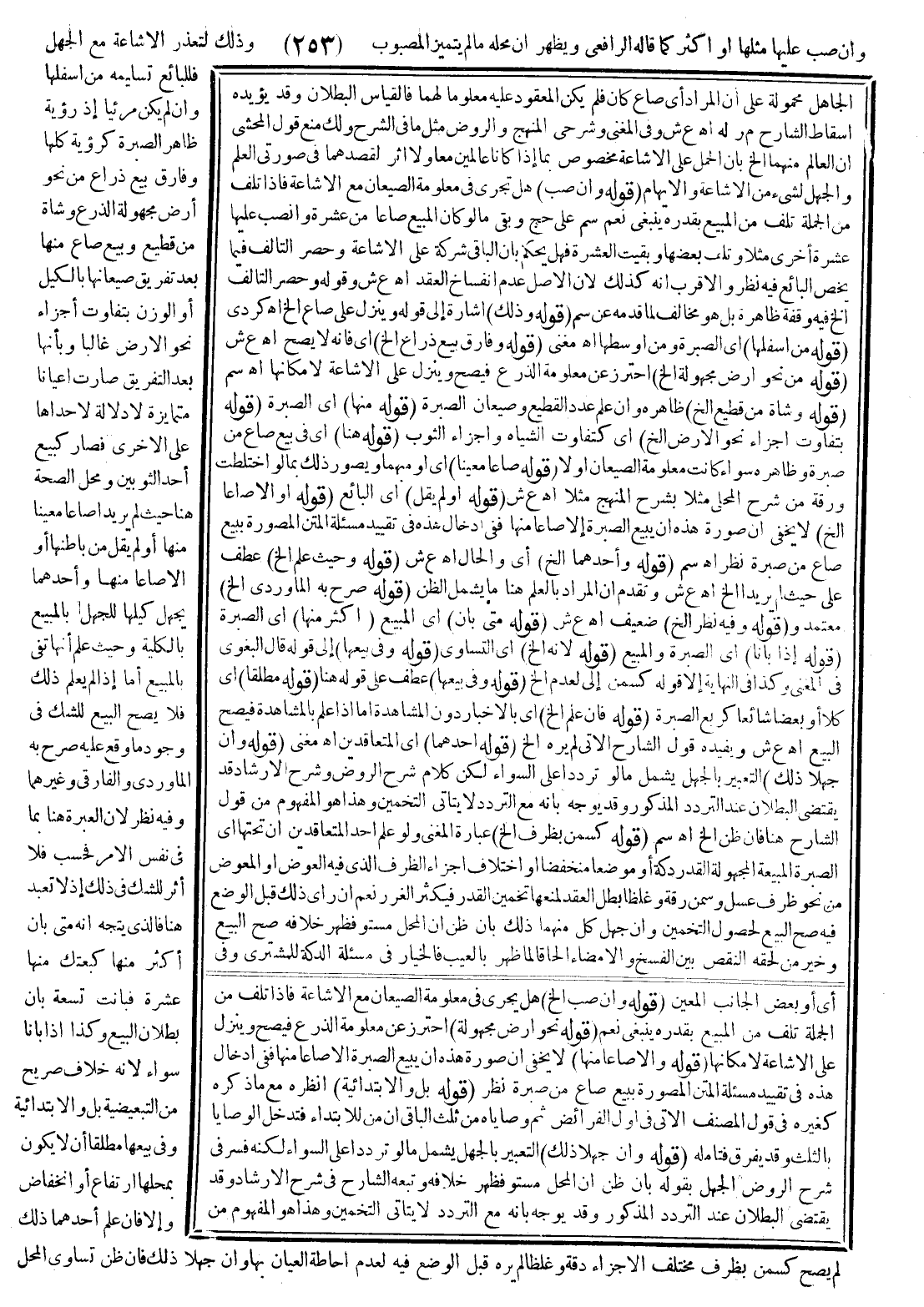 ـــــــــــــــــــــــــــــSأَيْ أَوْ بَعْضُ الْجَانِبِ الْمُعَيَّنِ (قَوْلُهُ: وَإِنْ صَبَّ إلَخْ) هَلْ يَجْرِي فِي مَعْلُومَةِ الصِّيعَانِ مَعَ الْإِشَاعَةِ فَإِذَا تَلِفَ مِنْ الْجُمْلَةِ تَلِفَ مِنْ الْمَبِيعِ بِقَدْرِهِ يَنْبَغِي نَعَمْ (قَوْلُهُ: نَحْوِ أَرْضٍ مَجْهُولَةٍ) احْتَرَزَ عَنْ مَعْلُومَةٍ لِذَرْعٍ فَيَصِحُّ وَيَنْزِلُ عَلَى الْإِشَاعَةِ لِإِمْكَانِهَا (قَوْلُهُ: وَإِلَّا صَاعًا مِنْهَا) لَا يَخْفَى أَنَّ صُورَةَ هَذِهِ أَنْ يَبِيعَ الصُّبْرَةَ إلَّا صَاعًا مِنْهَا فَفِي إدْخَالِ هَذِهِ فِي تَقْيِيدِ مَسْأَلَةِ الْمَتْنِ الْمُصَوَّرَةِ بِبَيْعِ صَاعٍ مِنْ صُبْرَةٍ نَظَرٌ (قَوْلُهُ: بَلْ وَالِابْتِدَائِيَّة) اُنْظُرْهُ مَعَ مَا ذَكَرَهُ كَغَيْرِهِ فِي قَوْلِ الْمُصَنِّفِ الْآتِي فِي أَوَّلِ الْفَرَائِضِ ثُمَّ وَصَايَاهُ مِنْ ثُلُثِ الْبَاقِي أَنَّ مَنْ لِلِابْتِدَاءِ فَتَدْخُلُ الْوَصَايَا بِالثُّلُثِ، وَقَدْ يُفَرَّقُ فَتَأَمَّلْهُ (قَوْلُهُ: وَإِنْ جَهِلَا ذَلِكَ) التَّعْبِيرُ بِالْجَهْلِ يَشْمَلُ مَا لَوْ تَرَدَّدَا عَلَى السَّوَاءِ لَكِنَّهُ فَسَّرَ فِي شَرْحِ الرَّوْضِ الْجَهْلَ بِقَوْلِهِ بِأَنْ ظُنَّ أَنَّ الْمَحَلَّ مُسْتَوٍ فَظَهَرَ خِلَافُهُ وَتَبِعَهُ الشَّارِحُ فِي شَرْحِ الْإِرْشَادِ، وَقَدْ يَقْتَضِي الْبُطْلَانَ عِنْدَ التَّرَدُّدِ الْمَذْكُورِ، وَقَدْ يُوَجَّهُ بِأَنَّهُ مَعَ التَّرَدُّدِ لَا يَتَأَتَّى التَّخْمِينُ، وَهَذَا هُوَ الْمَفْهُومُ مِنْ