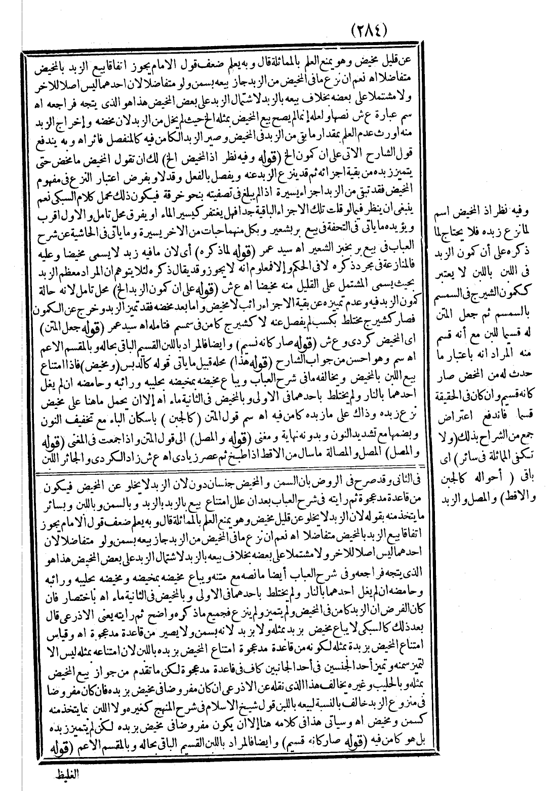 وَفِي الرَّوْضِ وَالسِّمْسِمُ بِالشَّيْرَجِ وَبِالْكُسْبِ بَاطِلٌ اهـ.