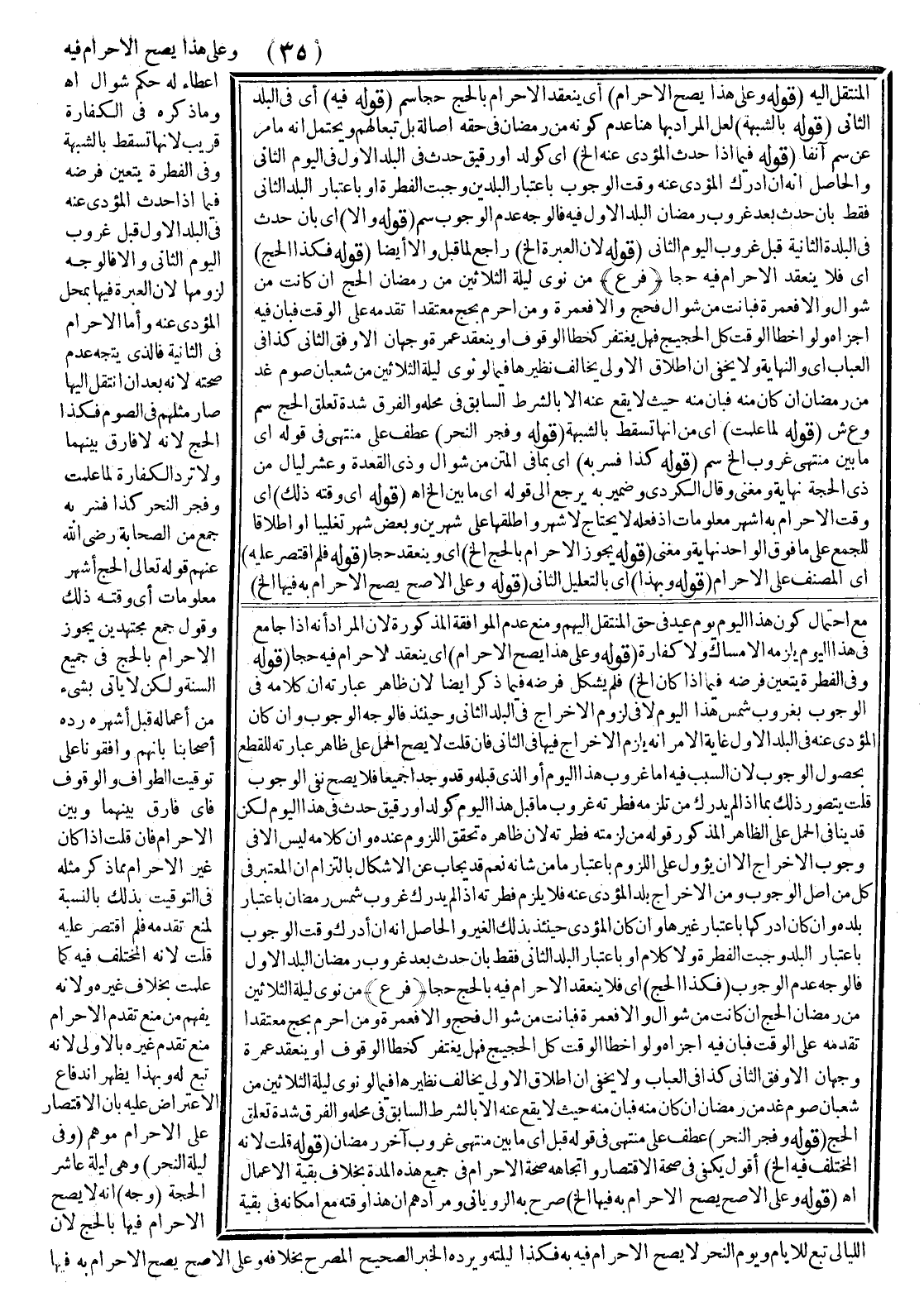 وَمَا ذَكَرَهُ فِي الْكَفَّارَةِ قَرِيبٌ؛ لِأَنَّهَا تَسْقُطُ بِالشُّبْهَةِ، وَفِي الْفِطْرَةِ يَتَعَيَّنُ فَرْضُهُ فِيمَا إذَا حَدَثَ الْمُؤَدَّى عَنْهُ فِي الْبَلَدِ الْأَوَّلِ قَبْلَ غُرُوبِ الْيَوْمِ الثَّانِي وَإِلَّا فَالْوَجْهُ لُزُومُهَا؛ لِأَنَّ الْعِبْرَةَ فِيهَا بِمَحَلِّ الْمُؤَدَّى عَنْهُ وَأَمَّا الْإِحْرَامُ فِي الثَّانِيَةِ فَاَلَّذِي يُتَّجَهُ عَدَمُ صِحَّتِهِ؛ لِأَنَّهُ بَعْدَ أَنْ انْتَقَلَ إلَيْهَا صَارَ مِثْلَهُمْ فِي الصَّوْمِ فَكَذَا الْحَجُّ؛ لِأَنَّهُ لَا فَارِقَ بَيْنَهُمَا وَلَا تَرِدُ الْكَفَّارَةُ لِمَا عَلِمْت، وَفَجْرِ النَّحْرِ كَذَا فَسَّرَ بِهِ جَمْعٌ مِنْ الصَّحَابَةِ - رَضِيَ اللَّهُ عَنْهُمْ - قَوْله تَعَالَى {الْحَجُّ أَشْهُرٌ مَعْلُومَاتٌ} [البقرة: 197] أَيْ وَقْتُهُ ذَلِكَ وَقَوْلُ جَمْعٍ مُجْتَهِدِينَ يَجُوزُ الْإِحْرَامُ بِالْحَجِّ فِي جَمِيعِ السَّنَةِ وَلَكِنْ لَا يَأْتِي بِشَيْءٍ مِنْ أَعْمَالِهِ قَبْلَ أَشْهُرِهِ رَدَّهُ أَصْحَابُنَا بِأَنَّهُمْ وَافَقُونَا عَلَى تَوْقِيتِ الطَّوَافِ وَالْوُقُوفِ فَأَيُّ فَارِقٍ بَيْنَهُمَا وَبَيْنَ الْإِحْرَامِ.