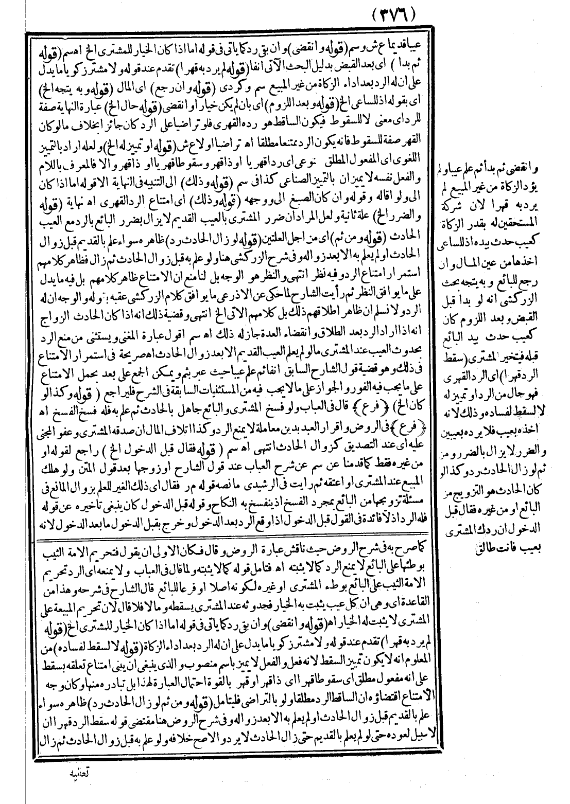 أَنَّهُ لَوْ عَلِمَ بِالْعَيْبِ وَجَهِلَ أَنَّ لَهُ الرَّدَّ بِهِ وَعُذِرَ بِجَهْلِهِ ثُمَّ اسْتَعْمَلَهُ سَقَطَ رَدُّهُ لِتَقْصِيرِهِ بِاسْتِعْمَالِهِ الدَّالِّ عَلَى الرِّضَا بِهِ فَإِنْ قُلْت لَا نُسَلِّمُ الِاقْتِضَاءَ وَالظَّاهِرَ الْمَذْكُورَيْنِ لِأَنَّهُ لَا يُتَصَوَّرُ مِنْهُ الرِّضَا إلَّا بِاسْتِعْمَالِهِ بَعْدَ عِلْمِهِ بِأَنَّ لَهُ الرَّدَّ وَأَمَّا مَعَ جَهْلِهِ فَهُوَ يَقُولُ إنَّمَا اسْتَعْمَلْتُهُ لِيَأْسِي مِنْ رَدِّي لَهُ لَا لِرِضَائِي بِهِ قُلْت مَا ذَكَرْتَ ظَاهِرٌ مَدْرَكًا وَإِنْ أَمْكَنَ تَوْجِيهُ مُقَابِلِهِ بِأَنَّ مُبَادَرَتَهُ إلَى الِاسْتِعْمَالِ قَبْلَ تَعَرُّفِ خَبَرِ هَذَا النَّقْصِ الَّذِي اطَّلَعَ عَلَيْهِ تَقْصِيرٌ فَعُومِلَ بِقَضِيَّتِهِ (وَيُعْذَرُ فِي رُكُوبِ جَمُوحٍ) لِلرَّدِّ (يَعْسُرُ سَوْقُهَا وَقَوَدُهَا) لِلْحَاجَةِ إلَيْهِ وَهَلْ يَلْزَمُهُ سُلُوكُ أَقْرَبِ الطَّرِيقَيْنِ حَيْثُ لَا عُذْرَ، لِلنَّظَرِ فِيهِ مَجَالٌ وَلَعَلَّ اللُّزُومَ أَقْرَبُ لِأَنَّهُ بِسُلُوكِ الْأَطْوَلِ مَعَ عَدَمِ الْعُذْرِ يُعَدُّ عَبَثًا كَمَا دَلَّ عَلَيْهِ كَلَامُهُمْ فِي الْقَصْرِ بِخِلَافِ رُكُوبِ غَيْرِ الْجَمُوحِ وَاسْتِدَامَتِهِ بَعْدَ عِلْمِهِ بِالْعَيْبِ بِخِلَافِ مَا لَوْ عَلِمَ عَيْبَ الثَّوْبِ فِي الطَّرِيقِ وَهُوَ لَابِسُهُ لَا يَلْزَمُهُ نَزْعُهُ لِأَنَّهُ غَيْرُ مَعْهُودٍ.