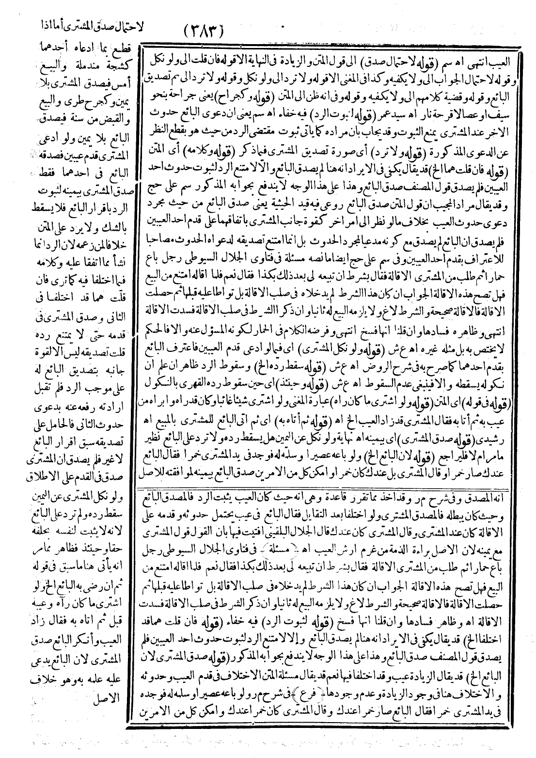(فَرْعٌ) لَوْ اشْتَرَى بِطِّيخَةً فَوَجَدَ لُبَّهَا أَنْبَتَ نَظَرَ فَإِنْ كَانَ ذَلِكَ عَقِبَ قَطْعِهِ مِنْ شَجَرِهِ كَانَ عَيْبًا لَهُ الرَّدُّ بِهِ وَإِنْ كَانَ بَعْدَ خَزِينِهِ أَيْ الْمُشْتَرِي مُدَّةً يَغْلِبُ إنْبَاتُهُ فِيهَا لَمْ يَكُنْ عَيْبًا فَلَا رَدَّ بِهِ اهـ ع ش وَقَوْلُهُ: فَإِنْ حَلَفَ فَلَهُ عَرْضُهَا إلَخْ مَحَلُّ تَأَمُّلٍ فَلْيُرَاجَعْ وَقَوْلُهُ: لِأَنَّهُ بِاجْتِهَادِهِ إلَخْ قَدْ يُؤْخَذُ مِنْهُ أَنَّهُ لَوْ تَغَيَّرَ اجْتِهَادُهُ إلَى أَنَّ النُّحَاسَ مِنْ الْآخَرِ فَلَهُ عَرْضُهُ عَلَيْهِ.