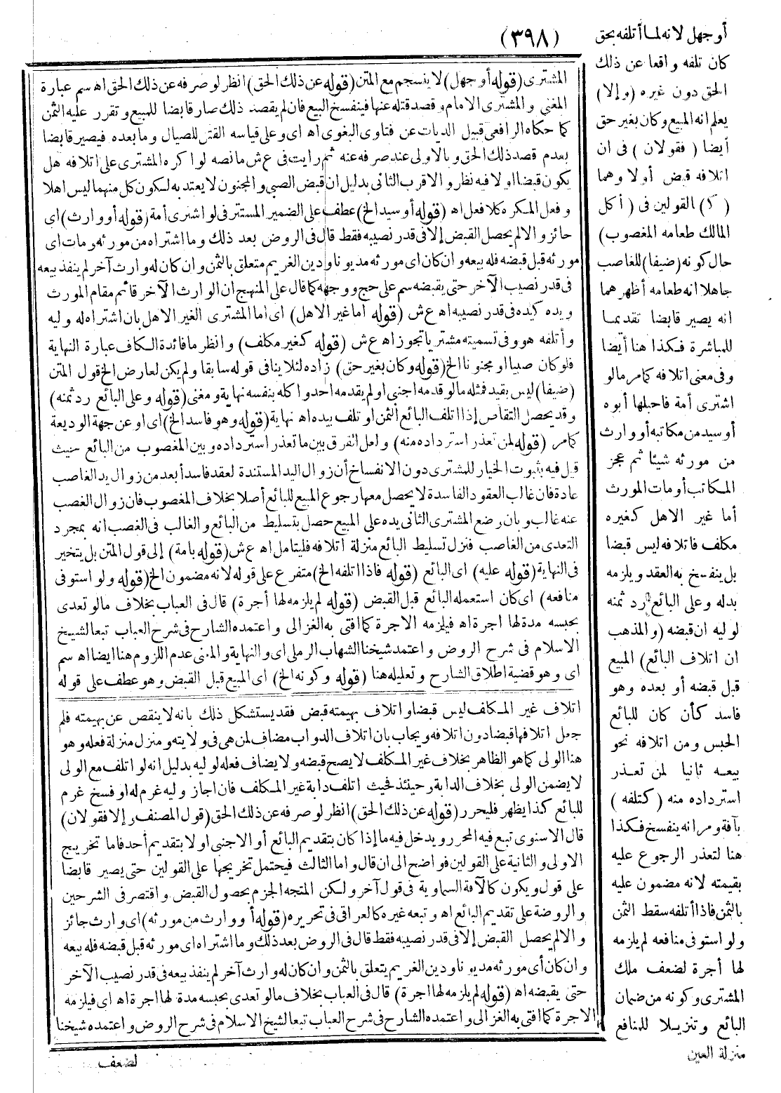 قَالَ بَعْضُهُمْ: وَالصُّورَةُ أَنَّ الْعَصِيرَ مُشَاهَدٌ وَأَنَّهُ أَقْبَضَهُ بِإِنَاءٍ مَوْكُوءٍ عَلَيْهِ بَعْدَ مُضِيِّ زَمَنٍ يُمْكِنُ فِيهِ تَخَمُّرُهُ وَقِيَاسُهُ أَنَّهُ لَوْ اشْتَرَى نَحْوَ زَيْتٍ ثُمَّ أَفْرَغَهُ الْبَائِعُ