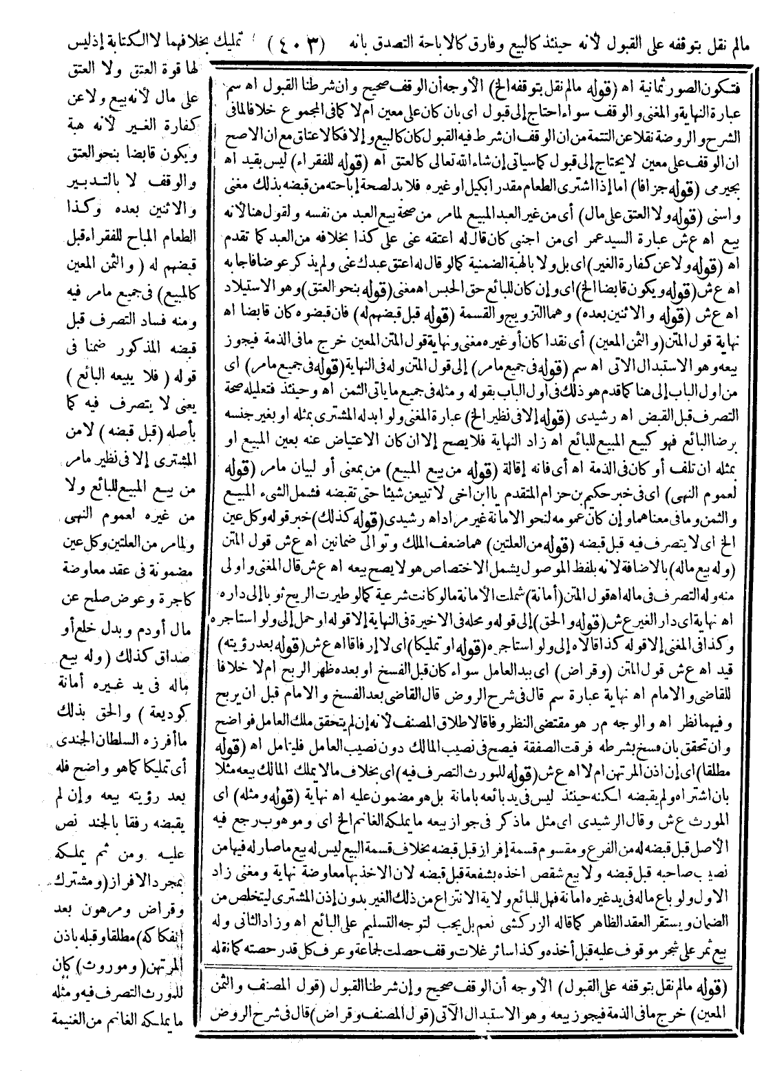قَوْلُ الْمَتْنِ (وَلَا يَصِحُّ بَيْعُ الْمَبِيعِ إلَخْ) قَالَ فِي شَرْحِ الرَّوْضِ أَيْ: وَالْمُغْنِي، وَإِنْ أَذِنَ الْبَائِعُ، وَقَبَضَ الثَّمَنَ انْتَهَى اهـ سم قَوْلُ الْمَتْنِ (قَبْلَ قَبْضِهِ) أَيْ: وَلَوْ تَقْدِيرًا اهـ نِهَايَةٌ قَالَ ع ش أَيْ: وَلَوْ كَانَ الْقَبْضُ الْمَنْفِيُّ تَقْدِيرًا كَأَنْ يَشْتَرِيَ طَعَامًا مُقَدَّرًا بِالْكَيْلِ فَقَبَضَهُ جُزَافًا لَا يَصِحُّ التَّصَرُّفُ فِيهِ حَتَّى يَكِيلَهُ وَيَدْخُلَ فِي ضَمَانِهِ اهـ وَقَالَ الرَّشِيدِيُّ قَوْلُهُ: وَلَوْ تَقْدِيرًا غَايَةٌ فِي الْقَبْضِ فَكَأَنَّهُ قَالَ: لَا يَصِحُّ بَيْعُهُ قَبْلَ قَبْضِهِ الْحَقِيقِيِّ وَالتَّقْدِيرِيِّ أَيْ: فَالشَّرْطُ وُجُودُ الْقَبْضِ، وَلَوْ التَّقْدِيرِيَّ حَتَّى يَصِحَّ التَّصَرُّفُ إذَا وَضَعَهُ الْبَائِعُ كَمَا مَرَّ، وَإِنْ لَمْ يَحْصُلْ الْحَقِيقِيُّ وَمَا فِي حَاشِيَةِ الشَّيْخِ مِمَّا حَاصِلُهُ أَنَّهُ غَايَةٌ فِي الْمَبِيعِ فَكَأَنَّهُ قَالَ: لَا يَصِحُّ بَيْعٌ، وَلَوْ مُقَدَّرًا بِنَحْوِ الْكَيْلِ، أَوْ الْوَزْنِ قَبْلَ قَبْضِهِ يُبْعِدُهُ أَنَّهُ لَوْ كَانَ هَذَا غَرَضَهُ لَكَانَ الْمُنَاسِبُ فِي الْغَايَةِ أَنْ يَقُولَ: وَلَوْ غَيْرَ مُقَدَّرٍ؛ إذْ الْمُقَدَّرُ يُشْتَرَطُ فِيهِ مَا لَا يُشْتَرَطُ فِي غَيْرِهِ كَمَا لَا يَخْفَى اهـ.