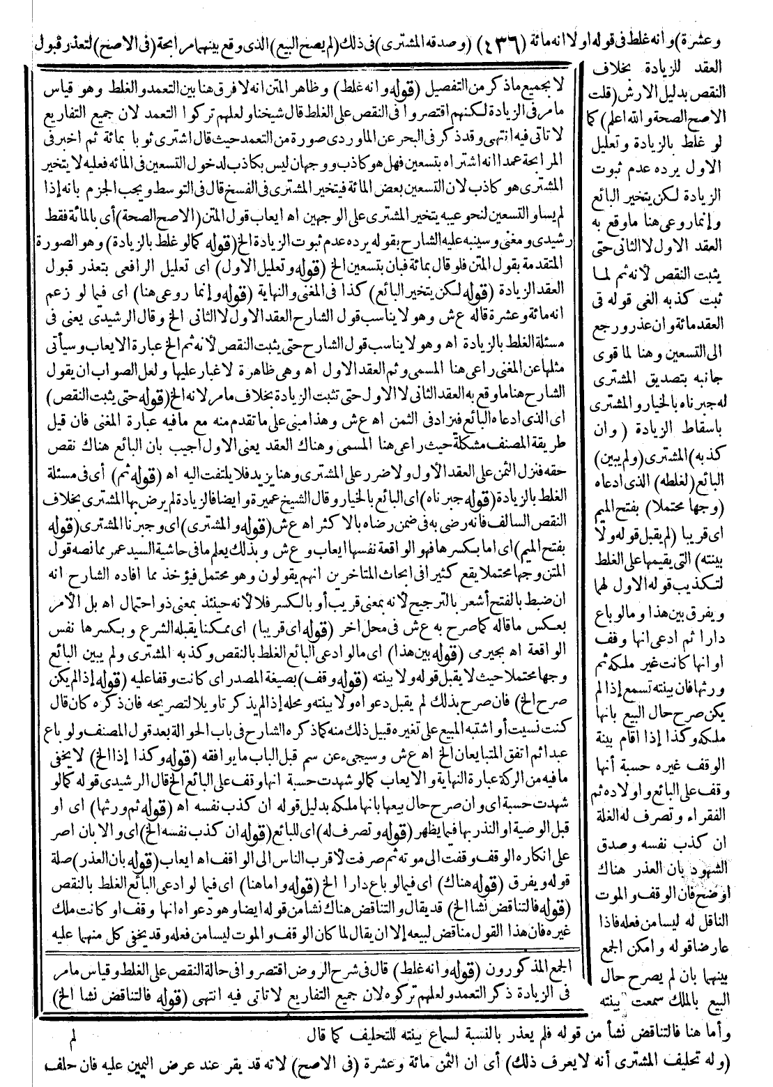 (قَوْلُهُ: وَقَالَ الْمُتَوَلِّي لَا فَرْقَ) وَحِينَئِذٍ فَالْمُرَادُ بِالْعَرَضِ مَا قَابَلَ النَّقْدَ فَيَشْمَلُ الْمِثْلِيَّ أَيْضًا، وَظَاهِرُ كَلَامِ النِّهَايَةِ بَلْ صَرِيحُهُ كَمَا فِي الرَّشِيدِيِّ رَادًّا عَلَى ع ش أَنَّهَا تَعْتَمِدُ قَوْلَ الْمُتَوَلِّي وِفَاقًا لِلشَّارِحِ (قَوْلُهُ: الْغَبْنِ) إلَى الْمَتْنِ فِي النِّهَايَةِ وَالْمُغْنِي (قَوْلُهُ: وَالشِّرَاءِ مِنْ مَحْجُورِهِ إلَخْ) وَمِثْلُهُ مَا إذَا اشْتَرَاهُ بِأَكْثَرَ مِنْ قِيمَتِهِ لِغَرَضٍ، وَلَوْ أَخَذَ أَرْشَ عَيْبٍ وَبَاعَ بِلَفْظِ قَامَ عَلَيَّ حُطَّ الْأَرْشُ، أَوْ بِلَفْظِ مَا اشْتَرَيْت ذَكَرَ صُورَةَ الْحَالِّ مِنْ عَيْبٍ وَأَخْذِ أَرْشٍ اهـ نِهَايَةٌ قَالَ ع ش قَوْلُهُ: وَلَوْ أَخَذَ أَرْشَ عَيْبٍ أَيْ: أَوْ أَرْشَ جِنَايَةٍ عَلَى الْمَبِيعِ بَعْدَ الشِّرَاءِ كَمَا فِي الْأَنْوَارِ قَالَهُ سم عَلَى مَنْهَجٍ وَأَقَرَّهُ الشَّارِحُ م ر اهـ وَفِي الْمُغْنِي مَا يُوَافِقُهُ (قَوْلُهُ: مَوْجُودٍ حَالَةَ الْعَقْدِ) أَيْ: بِخِلَافِ الْحَادِثِ بَعْدَهُ قَالَ فِي -