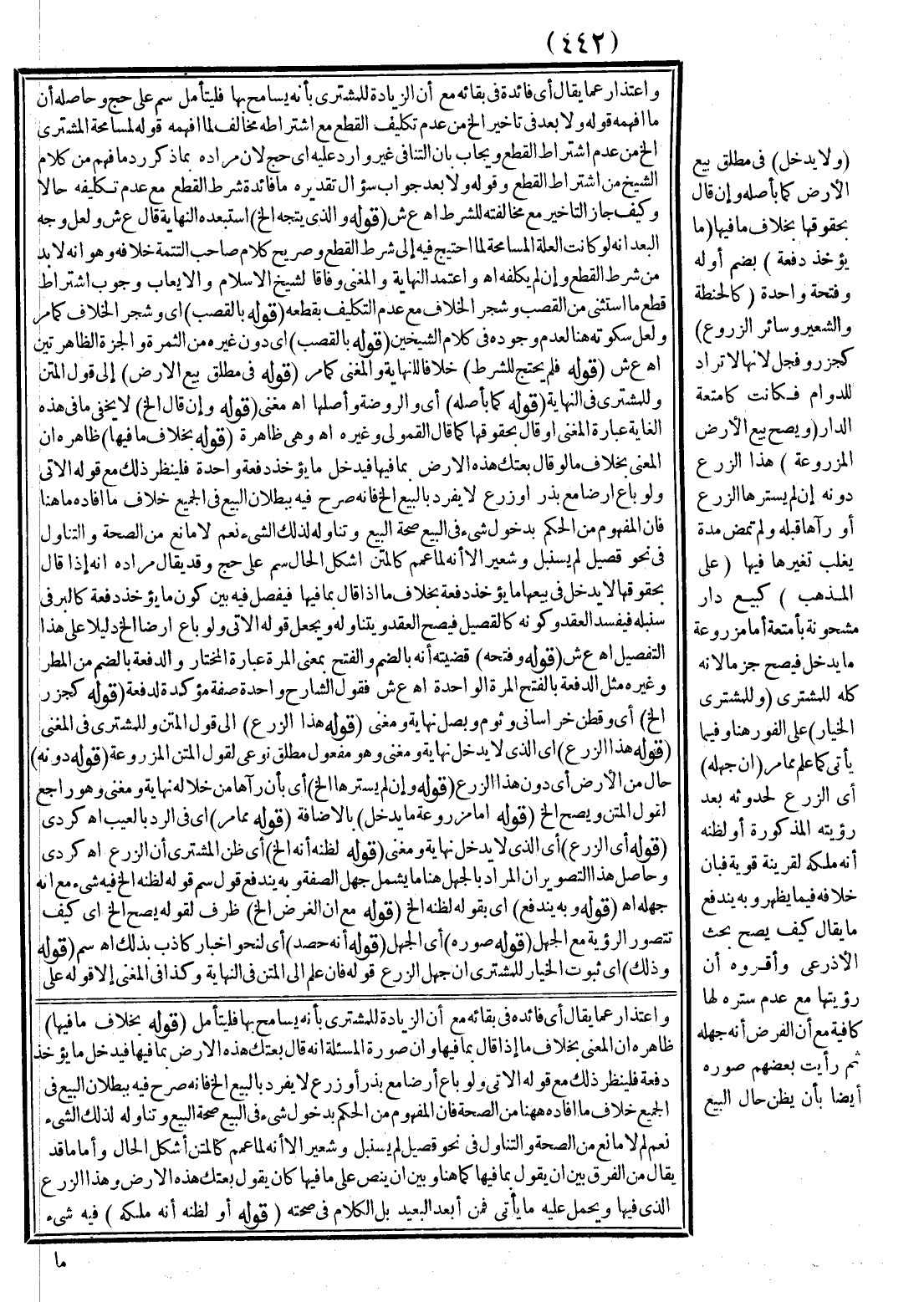 وَمَرَّ فِي الْبَيْعِ مَا يُعْلَمُ مِنْهُ أَنَّهُ لَا يَصِحُّ بَيْعُ حَرِيمِ الْمِلْكِ وَحْدَهُ وَمِثْلُهُ بَيْعُ شِرْبِ الْمَاءِ وَحْدَهُ؛ لِأَنَّ التَّابِعَ لَا يَسْتَقِلُّ وَإِنَّمَا صَحَّ عِتْقُ الْحَمْلِ وَحْدَهُ لِتَشَوُّفِ الشَّارِعِ إلَيْهِ، وَبَعْضُهُمْ فِي أَرْضٍ مُشْتَرَكَةٍ وَلِأَحَدِهِمْ فِيهَا نَخْلٌ خَاصٌّ بِهِ، أَوْ حِصَّتُهُ فِيهِ أَكْثَرُ مِنْهَا فِيهَا فَبَاعَ حِصَّتَهُ مِنْ الْأَرْضِ بِأَنَّهُ يَدْخُلُ جَمِيعُ الشَّجَرِ فِي الْأُولَى، وَحِصَّتُهُ فِي الثَّانِيَةِ؛ لِأَنَّهُ بَاعَ أَرْضًا لَهُ فِيهَا شَجَرٌ، وَرُدَّ بِأَنَّ الظَّاهِرَ فِي الزَّائِدِ خِلَافُهُ أَيْ: وَمَا عَلَّلَ بِهِ لَا يُنْتِجُ مَا قَالَهُ؛ لِأَنَّ الشَّجَرَ لَيْسَ فِي أَرْضِهِ وَحْدَهُ بَلْ فِي أَرْضِهِ وَأَرْضِ غَيْرِهِ فَلْيَدْخُلْ مَا فِي أَرْضِهِ فَقَطْ، وَهُوَ مَا يَخُصُّ حِصَّتَهُ فِي الْأَرْضِ دُونَ مَا زَادَ عَلَيْهِ مِمَّا فِي حِصَّةِ شَرِيكِهِ