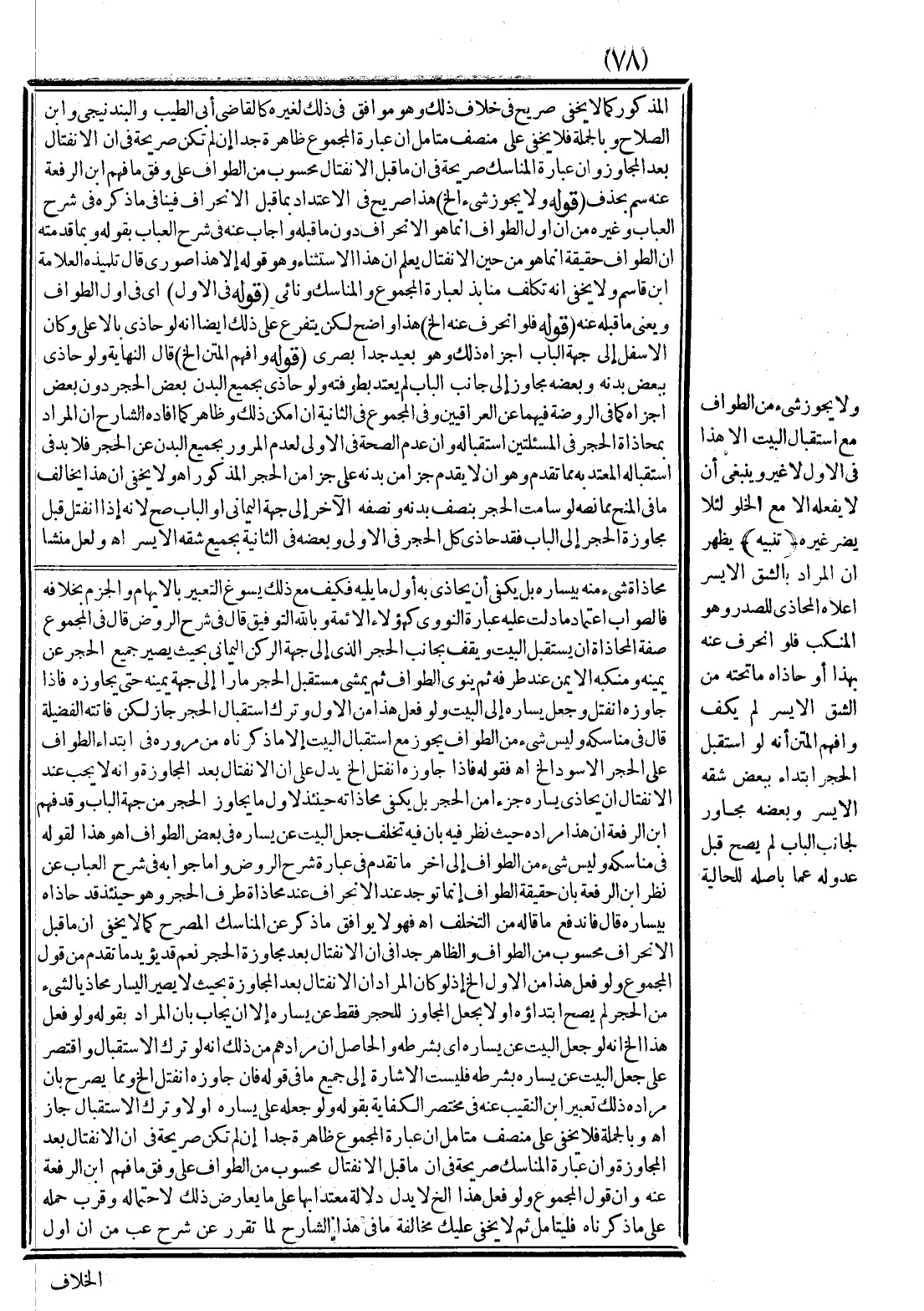 ـــــــــــــــــــــــــــــQالْمَذْكُورَ كَمَا لَا يَخْفَى صَرِيحٌ فِي خِلَافِ ذَلِكَ، وَهُوَ مُوَافِقٌ فِي ذَلِكَ لِغَيْرِهِ كَالْقَاضِي أَبِي الطَّيِّبِ وَالْبَنْدَنِيجِيّ وَابْنِ الصَّلَاحِ وَبِالْجُمْلَةِ فَلَا يَخْفَى عَلَى مُصَنِّفٍ مُتَأَمِّلٍ أَنَّ عِبَارَةَ الْمَجْمُوعِ ظَاهِرَةٌ جِدًّا إنْ لَمْ تَكُنْ صَرِيحَةً فِي أَنَّ الِانْفِتَالَ بَعْدَ الْمُجَاوَزَةِ وَأَنَّ عِبَارَةَ الْمَنَاسِكِ صَرِيحَةٌ فِي أَنَّ مَا قَبْلَ الِانْفِتَالِ مَحْسُوبٌ مِنْ الطَّوَافِ عَلَى وَفْقِ مَا فَهِمَ ابْنُ الرِّفْعَةِ عَنْهُ سم بِحَذْفِ.